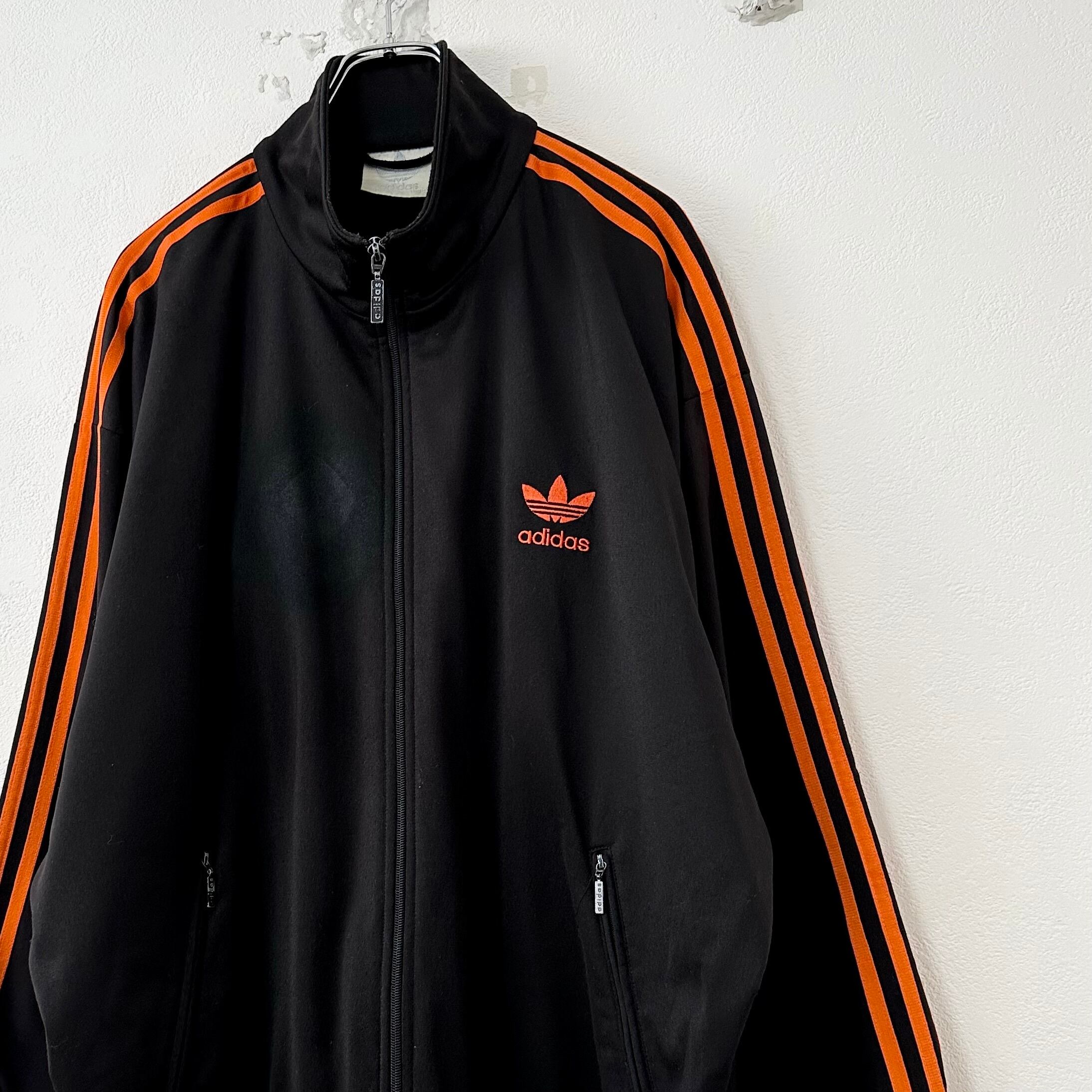 80s★ヴィンテージ★adidas/アディダス★ファイヤーバード★トラックジャケット/ジャージ★ブラック/黒×オレンジ★2XL