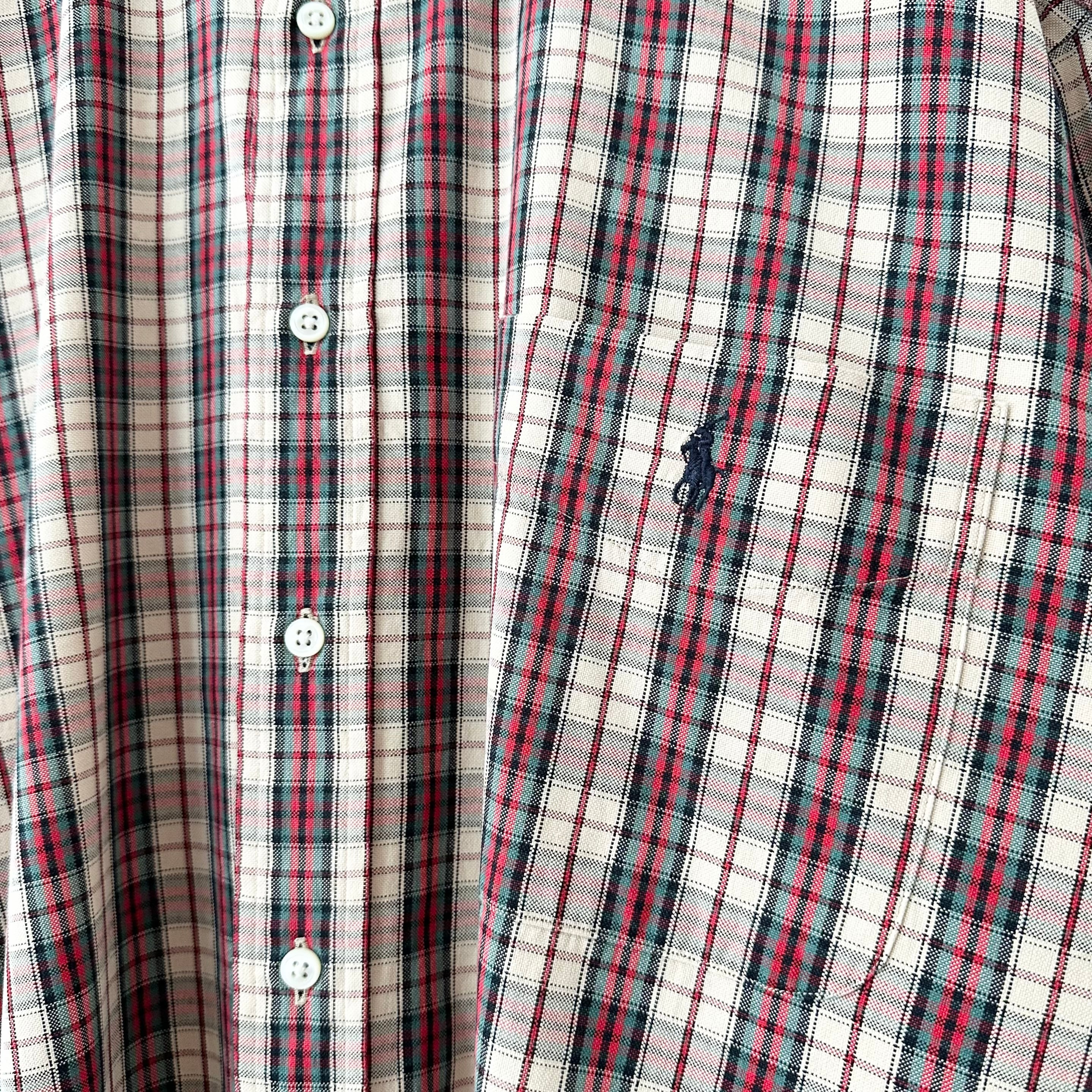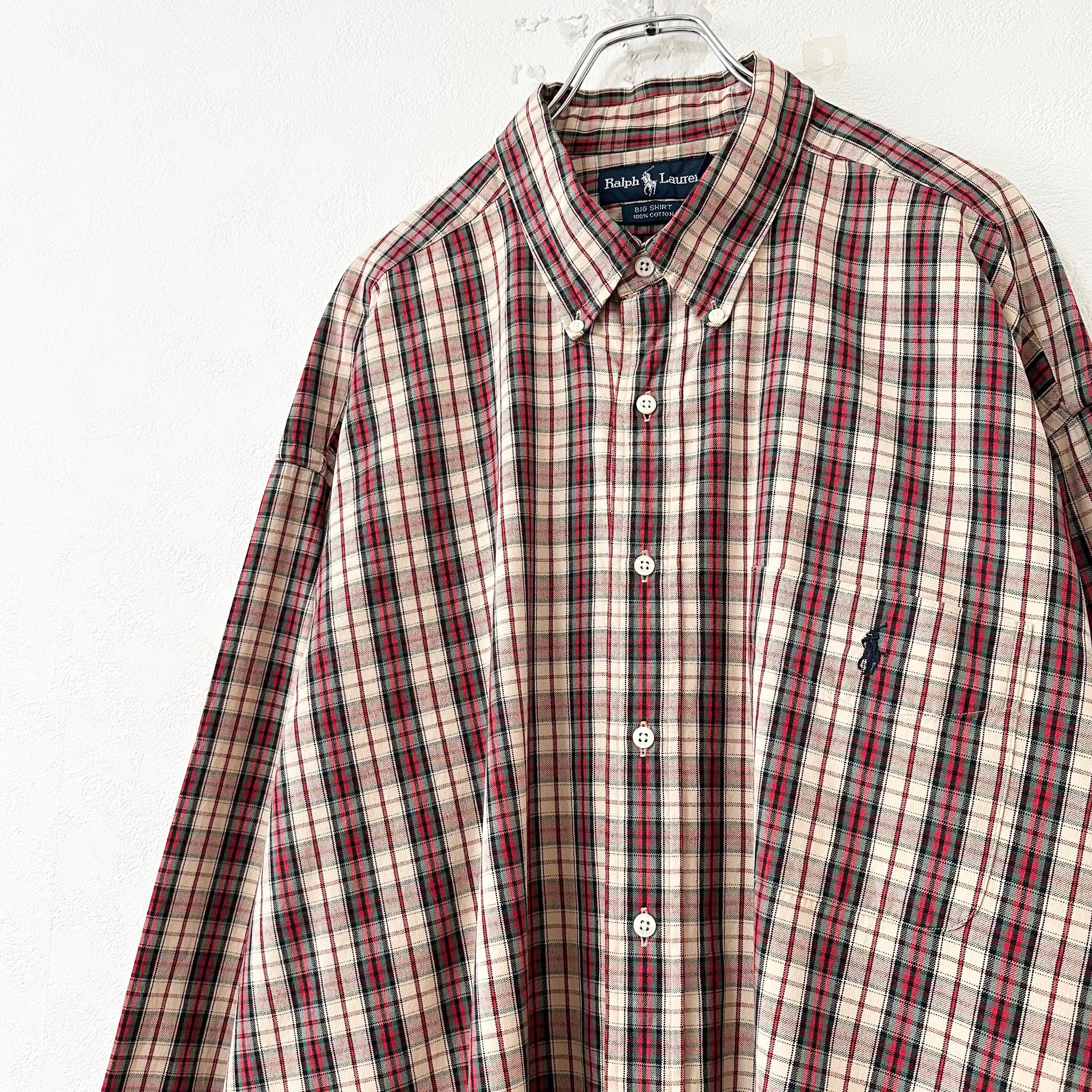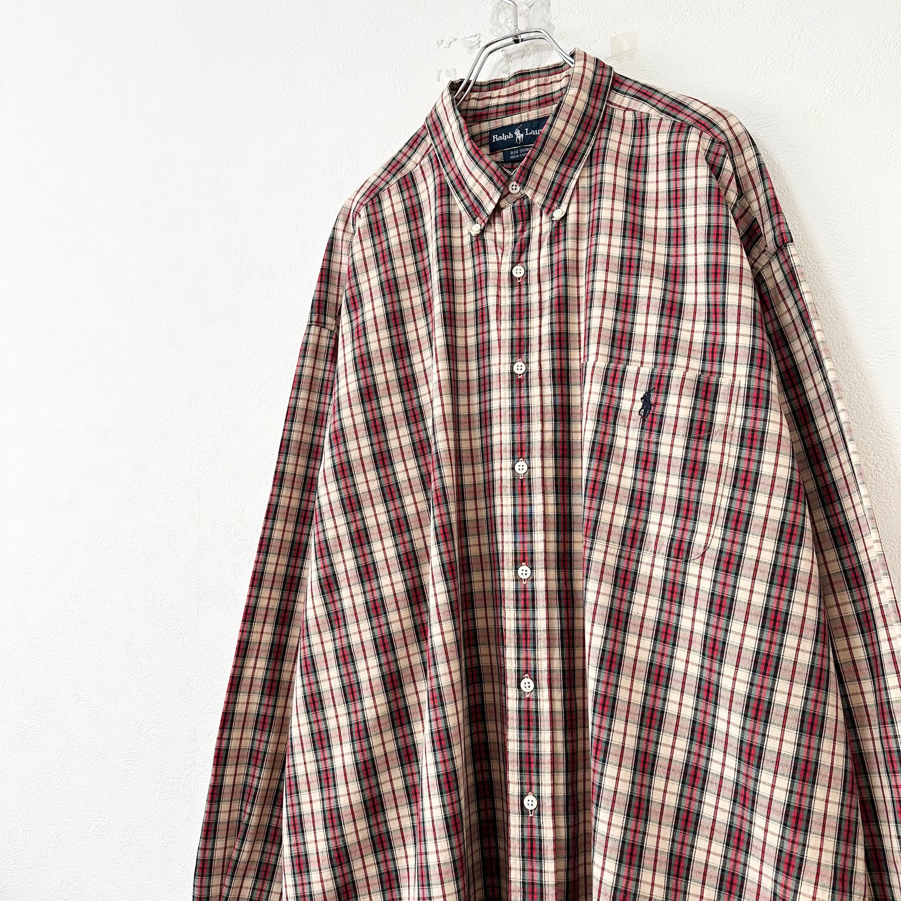 美品★Polo Ralph Lauren/ポロ ラルフローレン★長袖BDビッグシャツ★チェック★赤系★2XL〜3XL相当