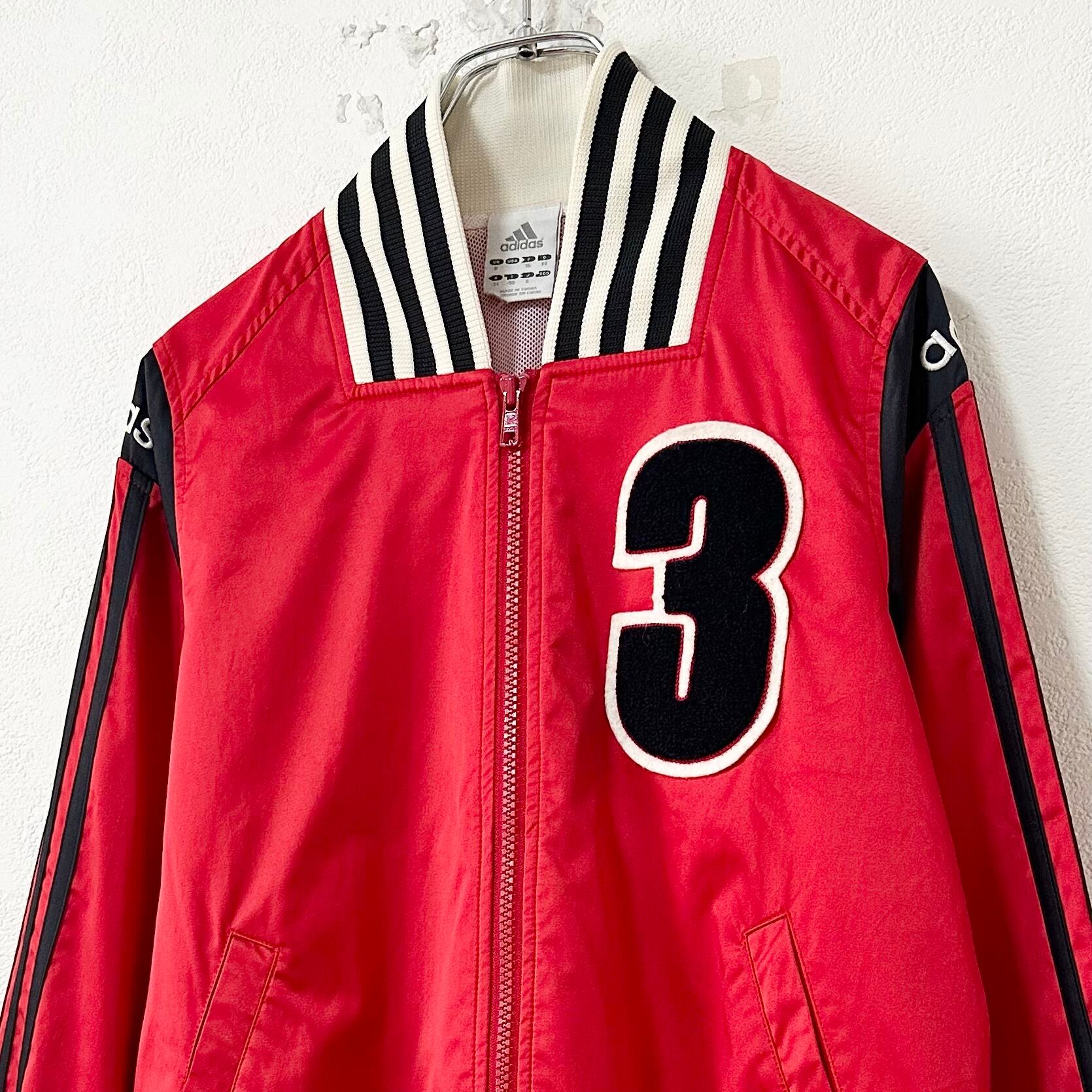 美品★00s★adidas/アディダス★スタジャン★レトロジャケット★サガラ刺繍★レッド×ホワイト×ブラック/赤白黒★S