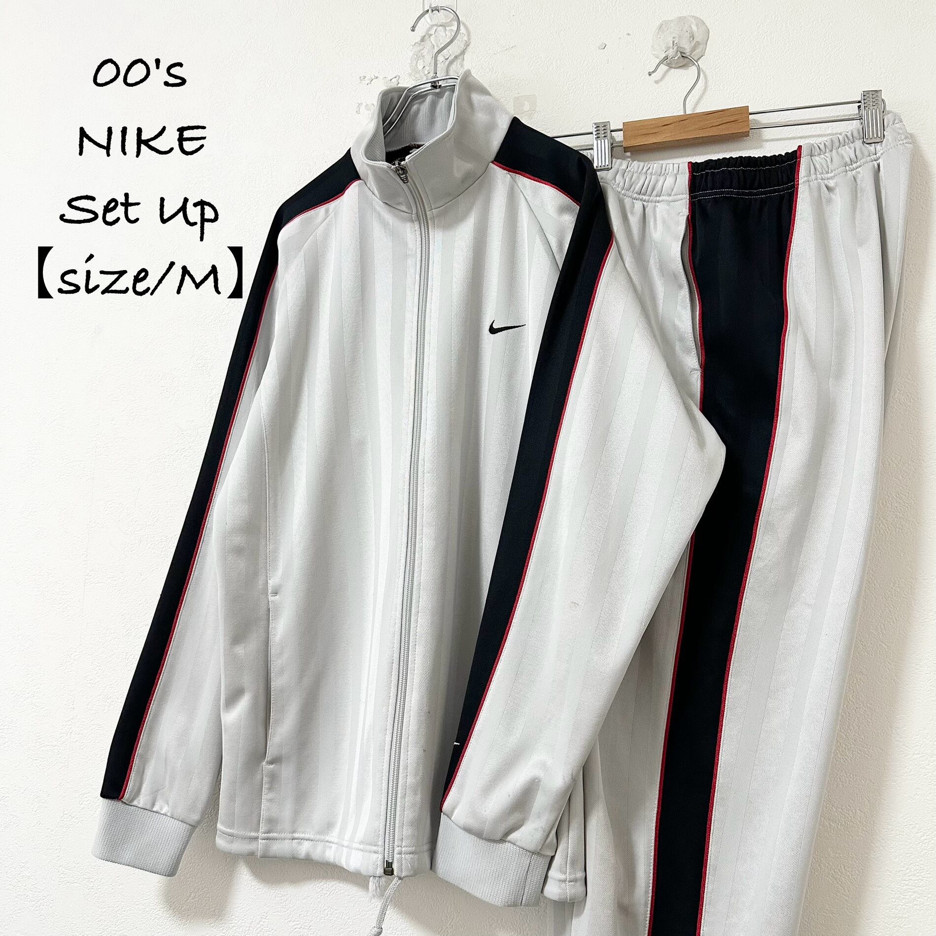 00s★NIKE/ナイキ★ジャージ上下★セットアップ★レトロ★ライトグレー/シルバー×黒×赤★M