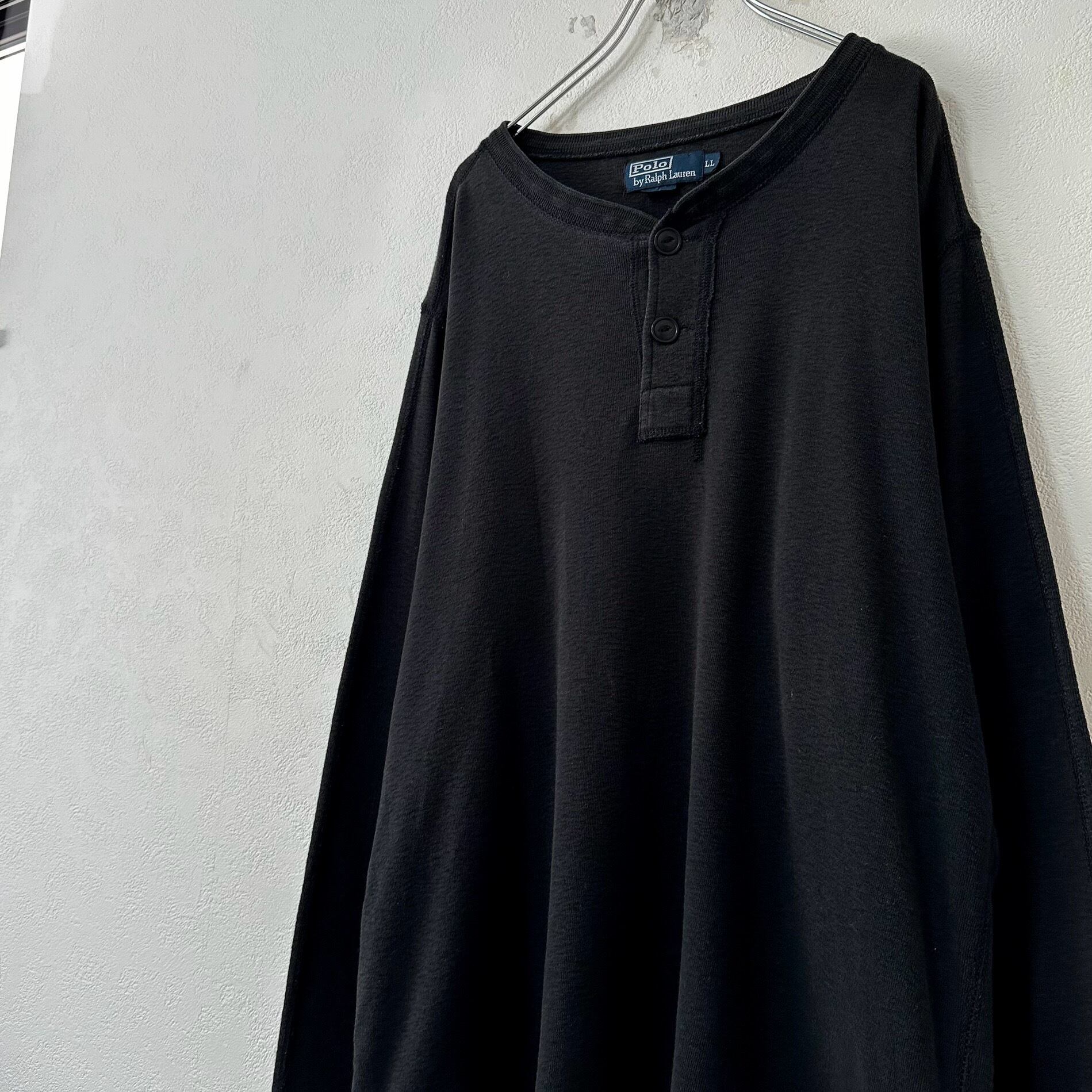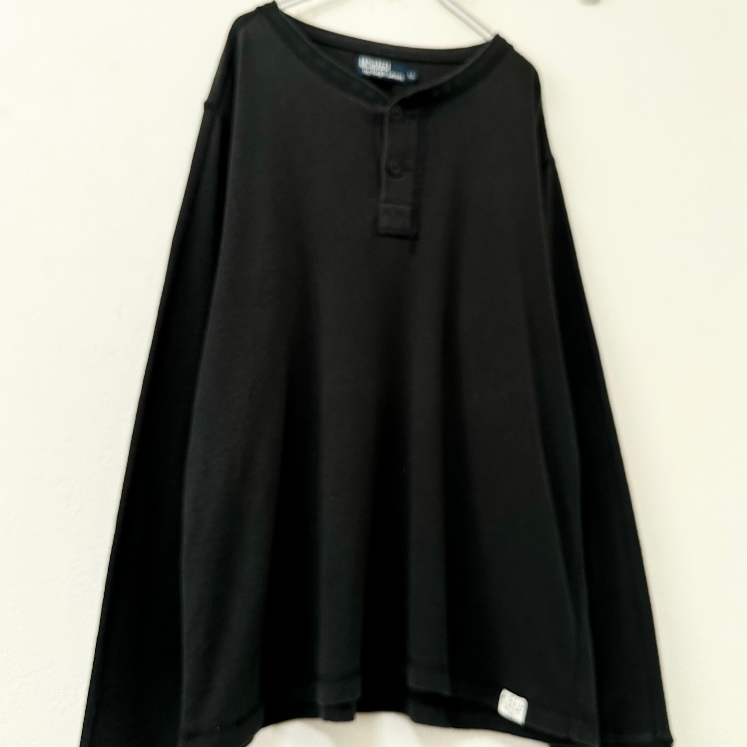 90s★Polo Ralph Lauren★ポロ ラルフローレン★ヘンリーネック★長袖Tシャツ★ロンT★ブラック/黒★XL