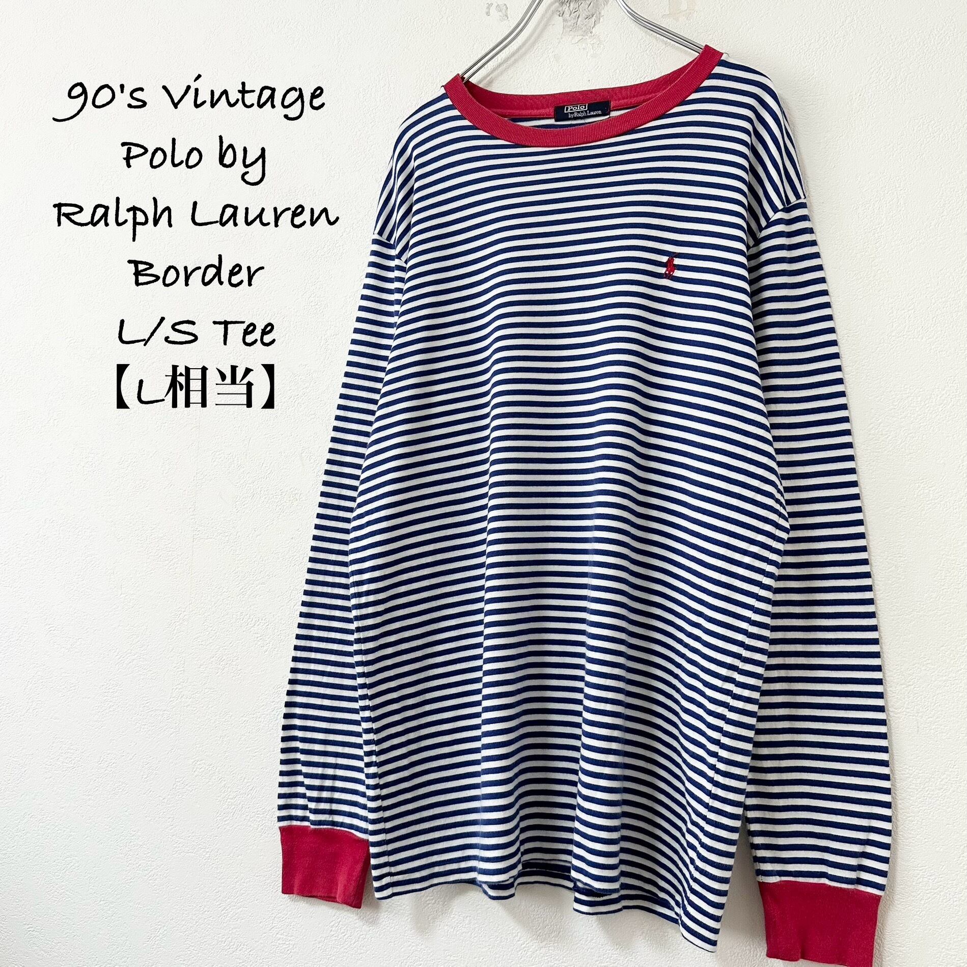 90s★Polo Ralph Lauren/ポロ ラルフローレン★長袖Tシャツ/ロンT★ボーダー&ポニー★青/紺×白×赤★L相当