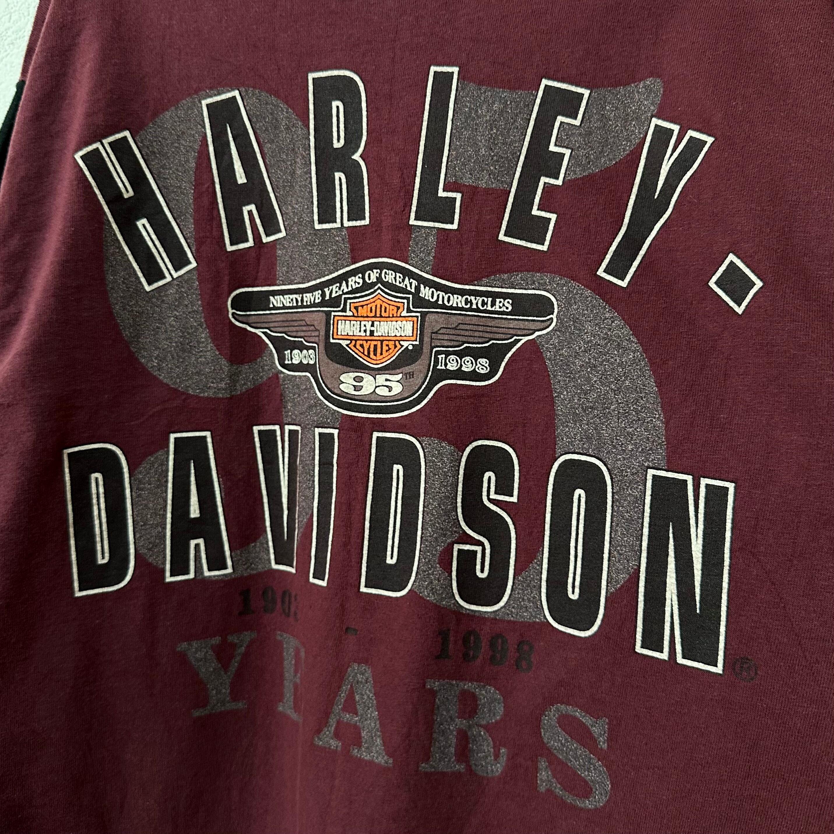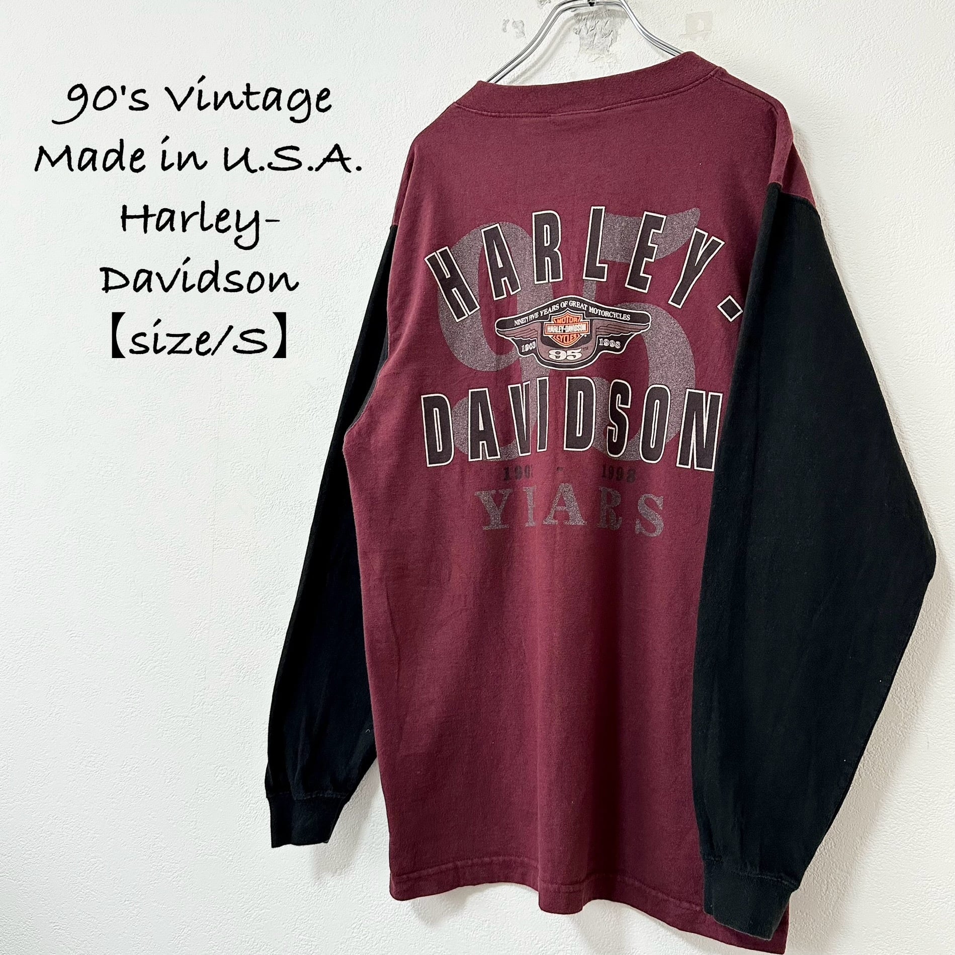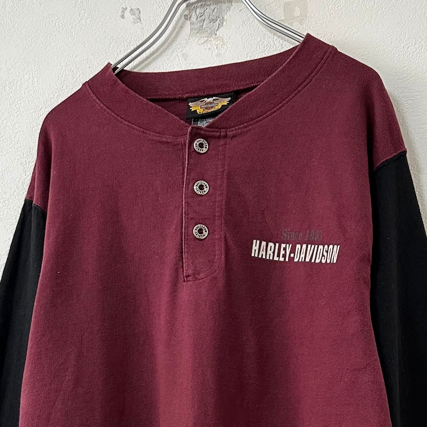 90s★USA製★ヴィンテージ★Harley-Davidson/ハーレーダビッドソン★ヘンリーネック★長袖★ロンT★ワイン系★S