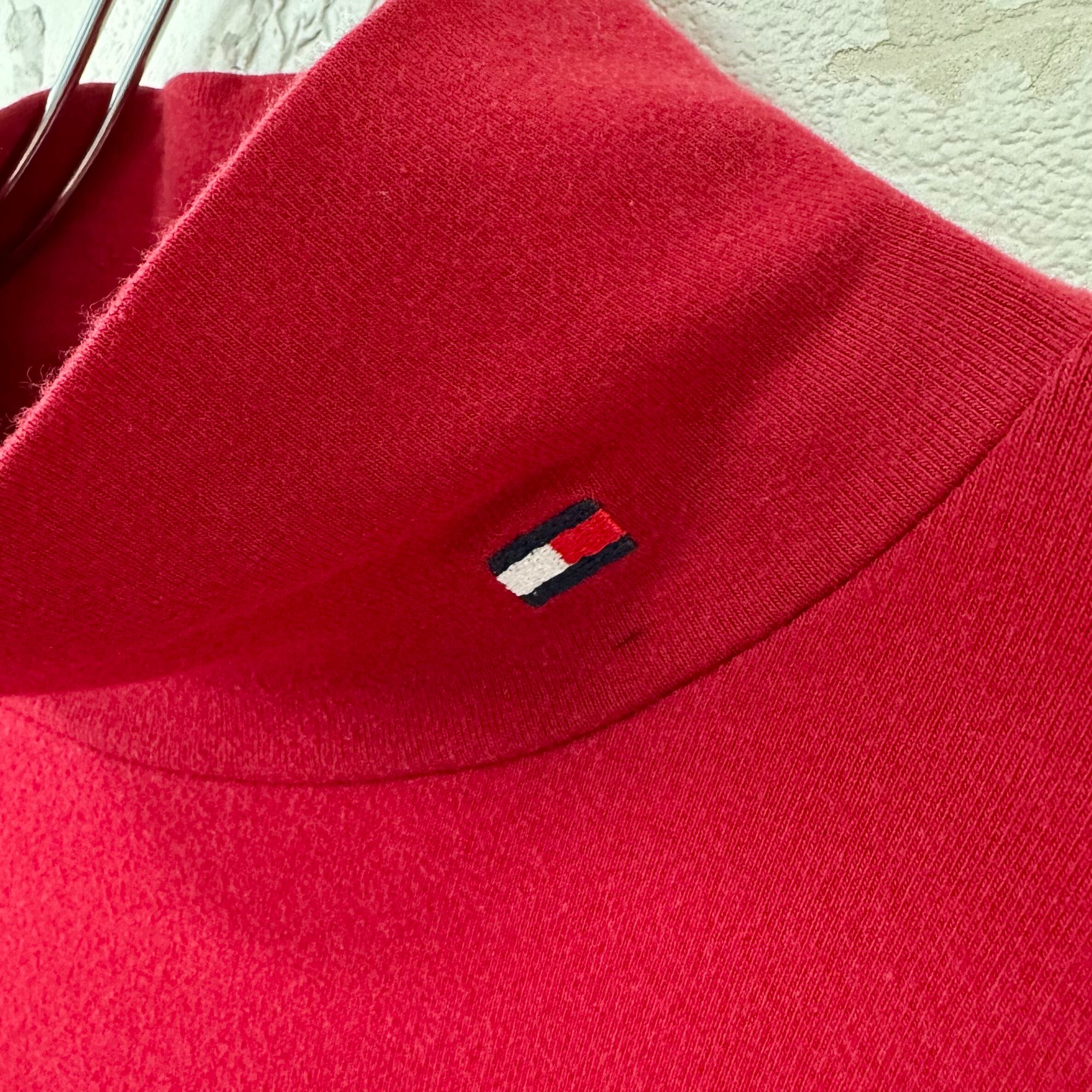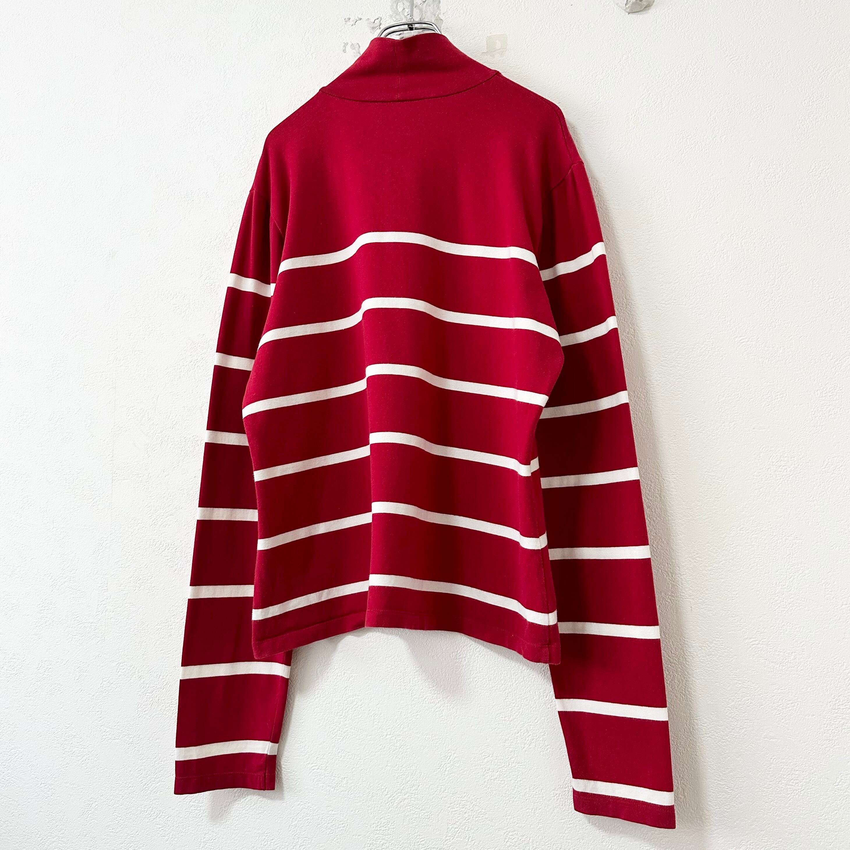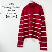 00s★Tommy Hilfiger/トミーヒルフィガー★ボーダー★ハイネック★長袖Tシャツ/ロンT★赤白★XL