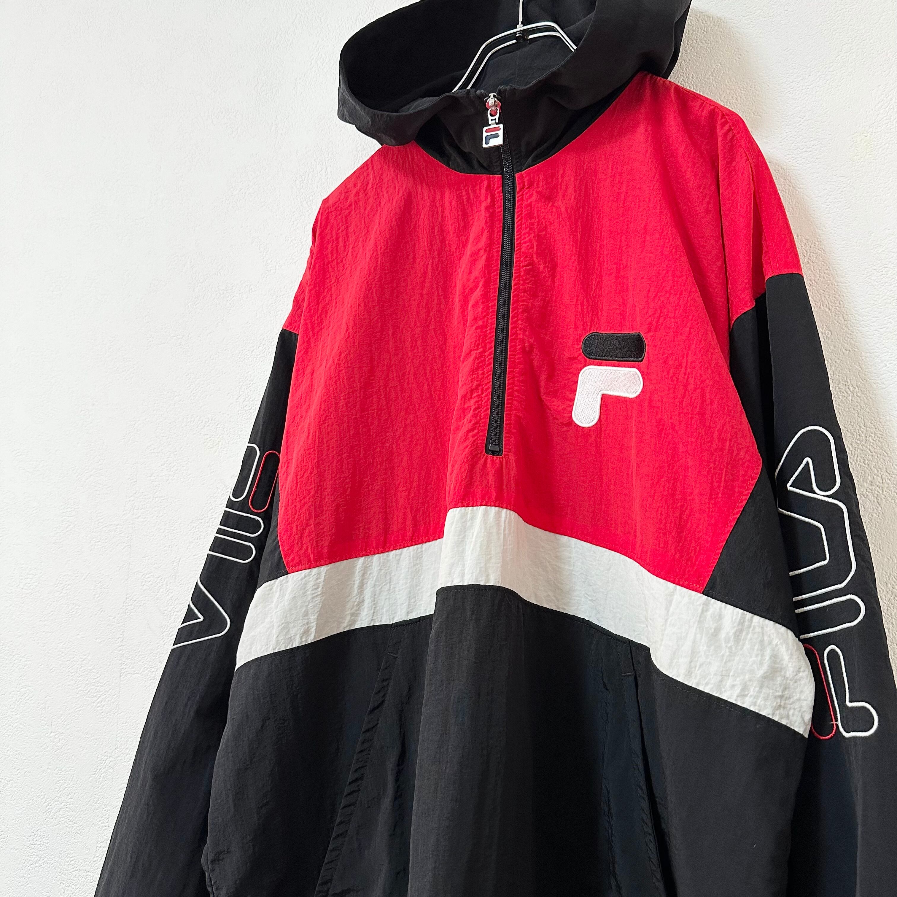 90s★Vintage/ヴィンテージ★FILA/フィラ★ナイロンジャケット/パーカー★ハーフジップ★ブラック/黒×赤×白★L