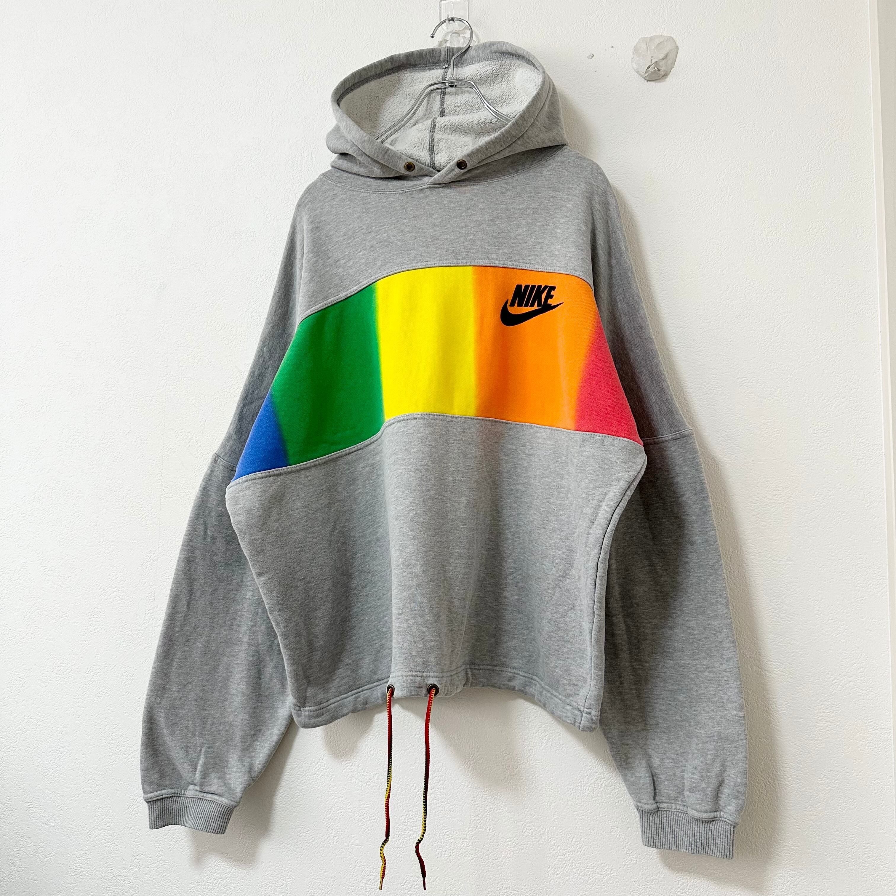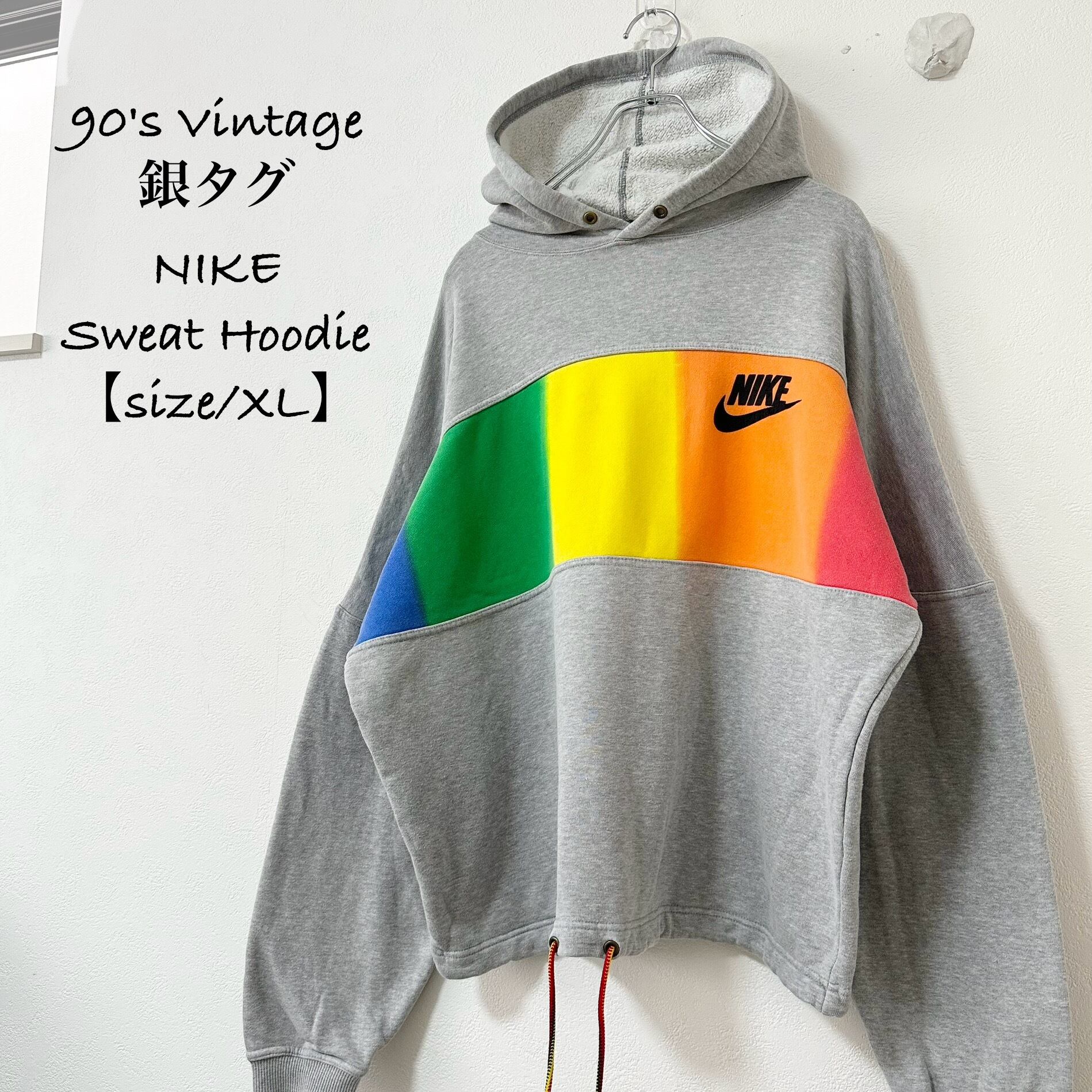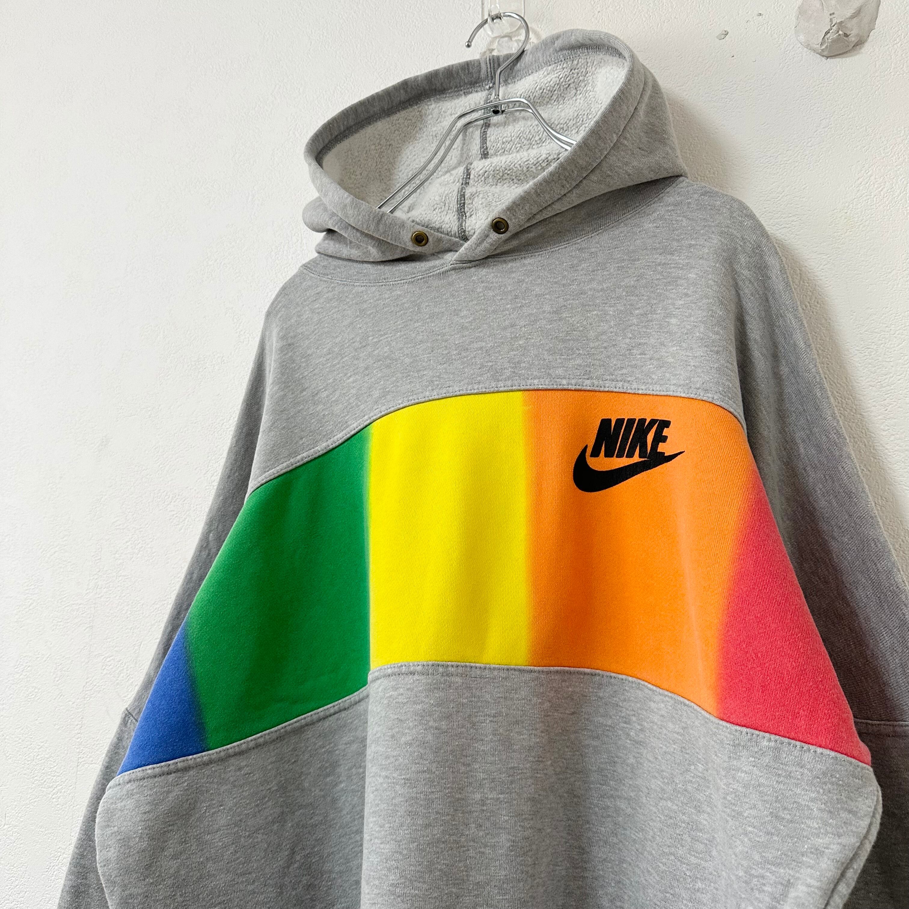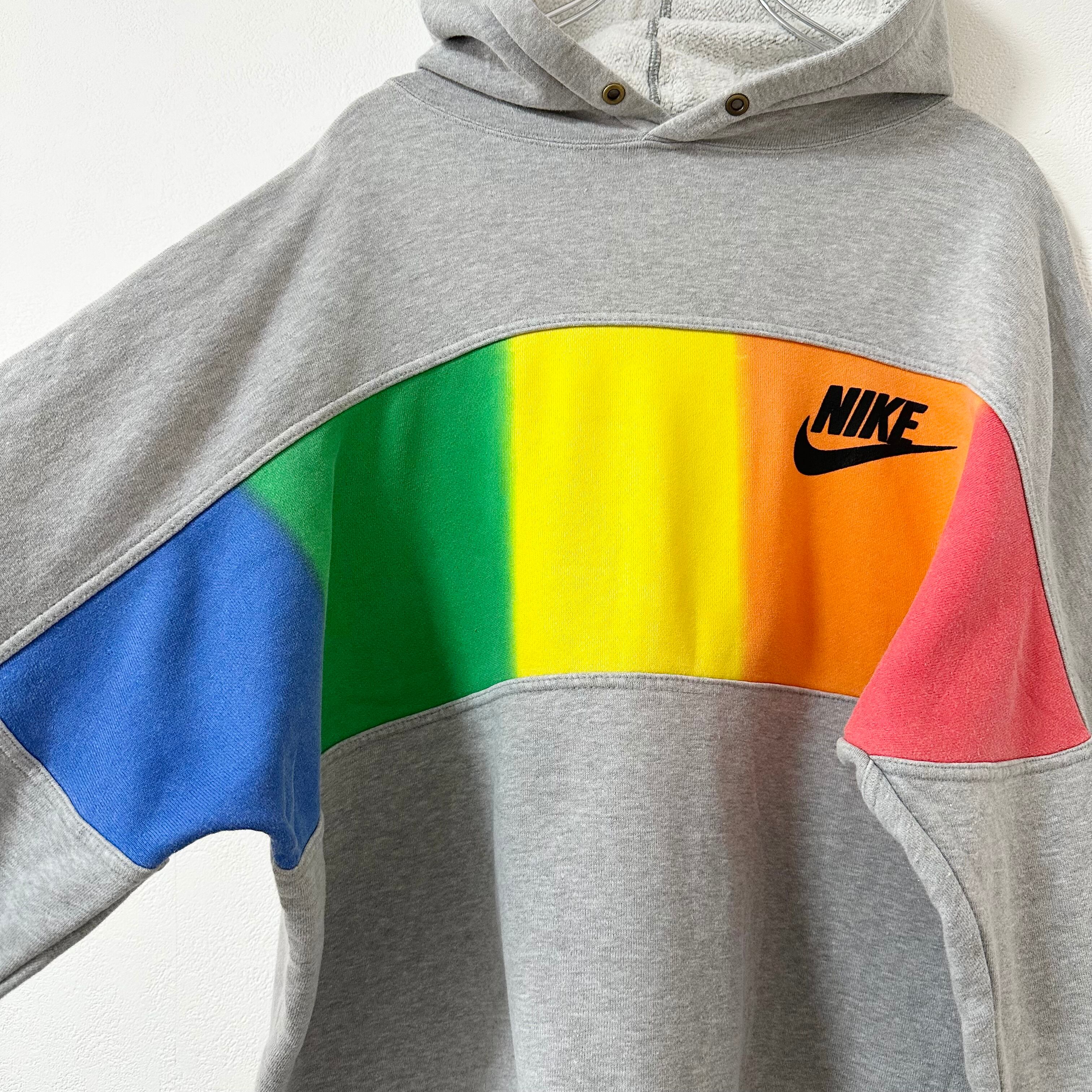 90s★ヴィンテージ★銀タグ★NIKE/ナイキ★スウェットパーカー★グレー×ブルー×グリーン×イエロー×オレンジ×レッド★XL
