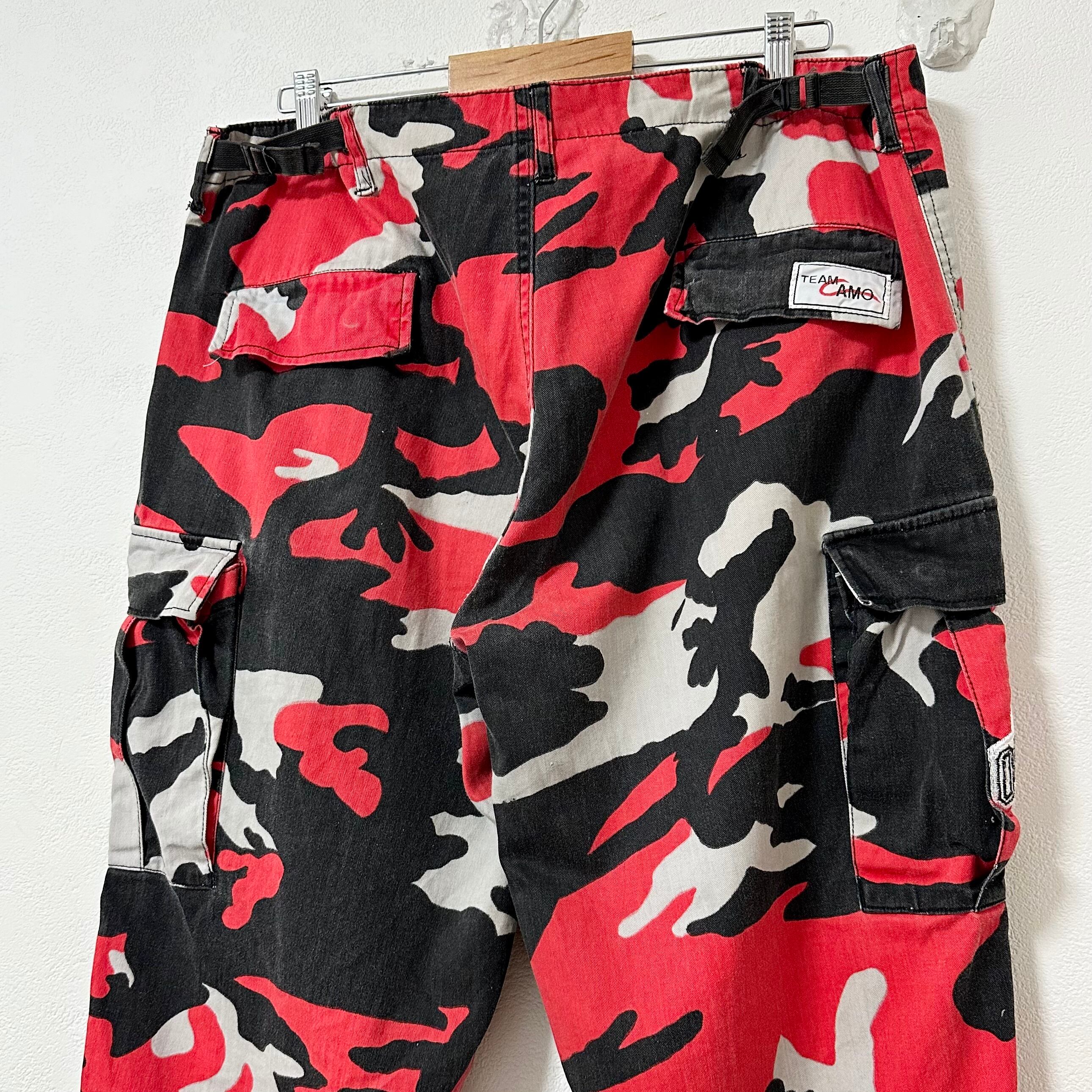 Team Camo★カーゴパンツ★ウッドランドカモ/迷彩★レッド/赤黒 系★XL