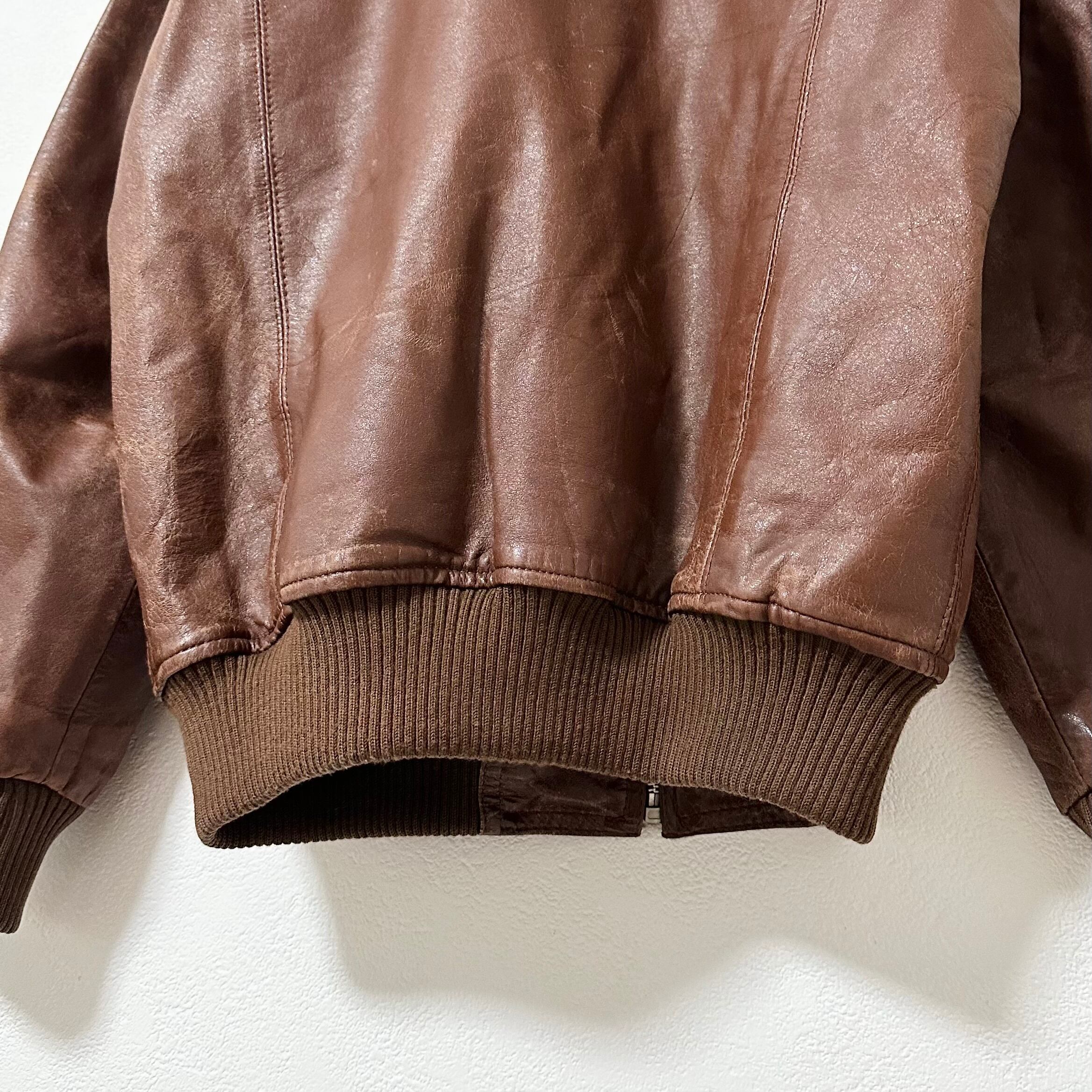 DELUXE★レザージャケット★牛革/本革★裏地チェック★ブラウン/茶★M相当
