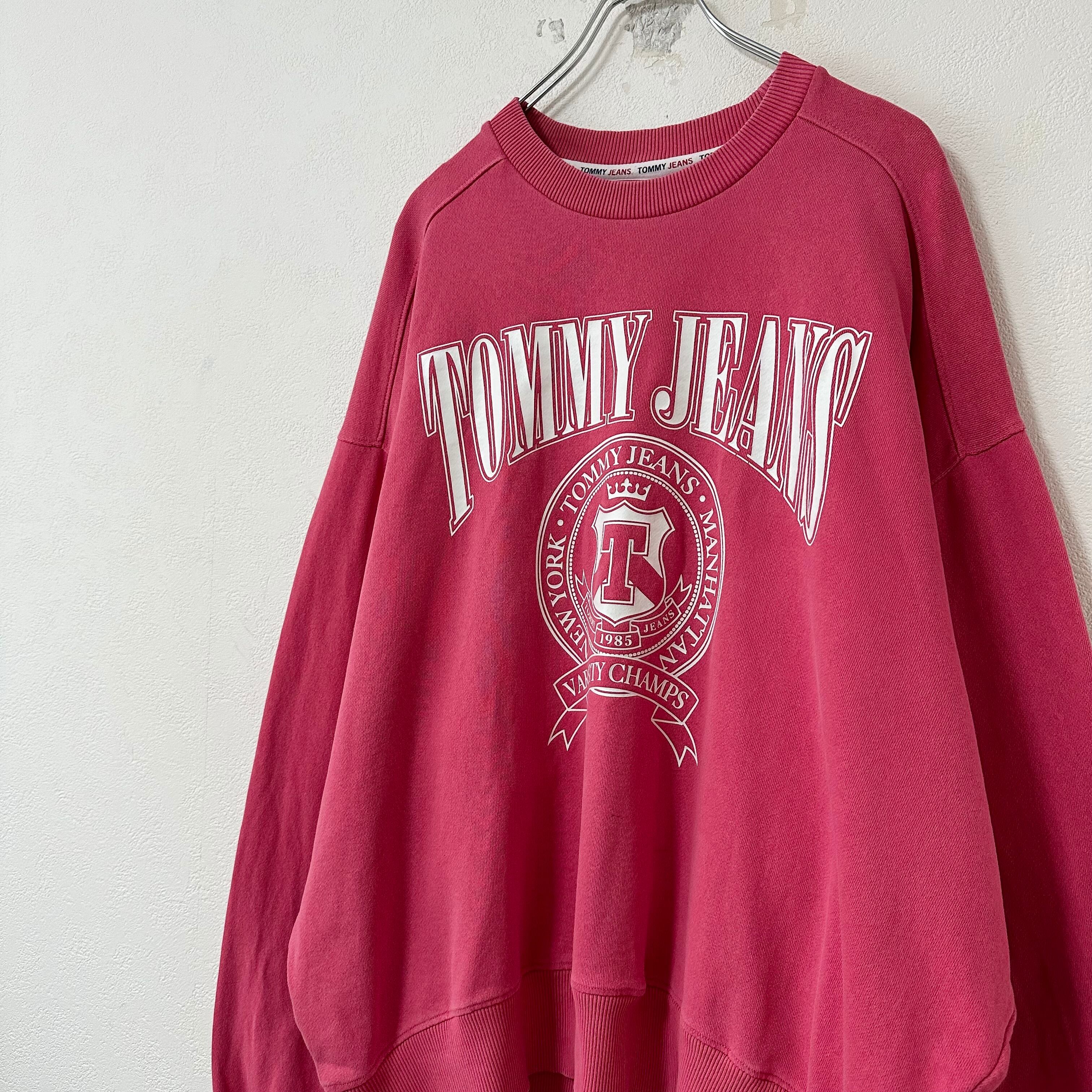 Tommy/トミーヒルフィガー★スウェット★カレッジロゴ★ピンク×ホワイト★L