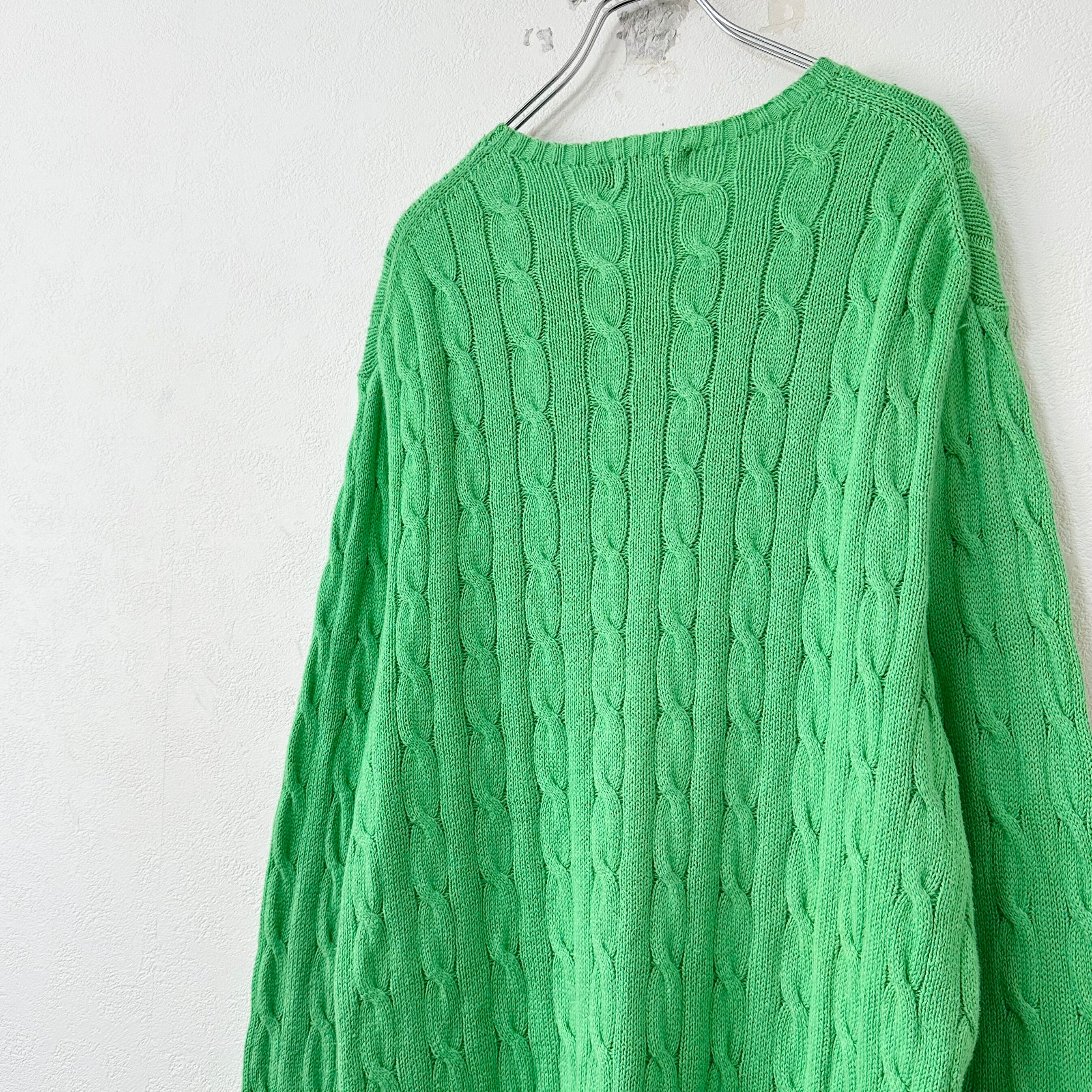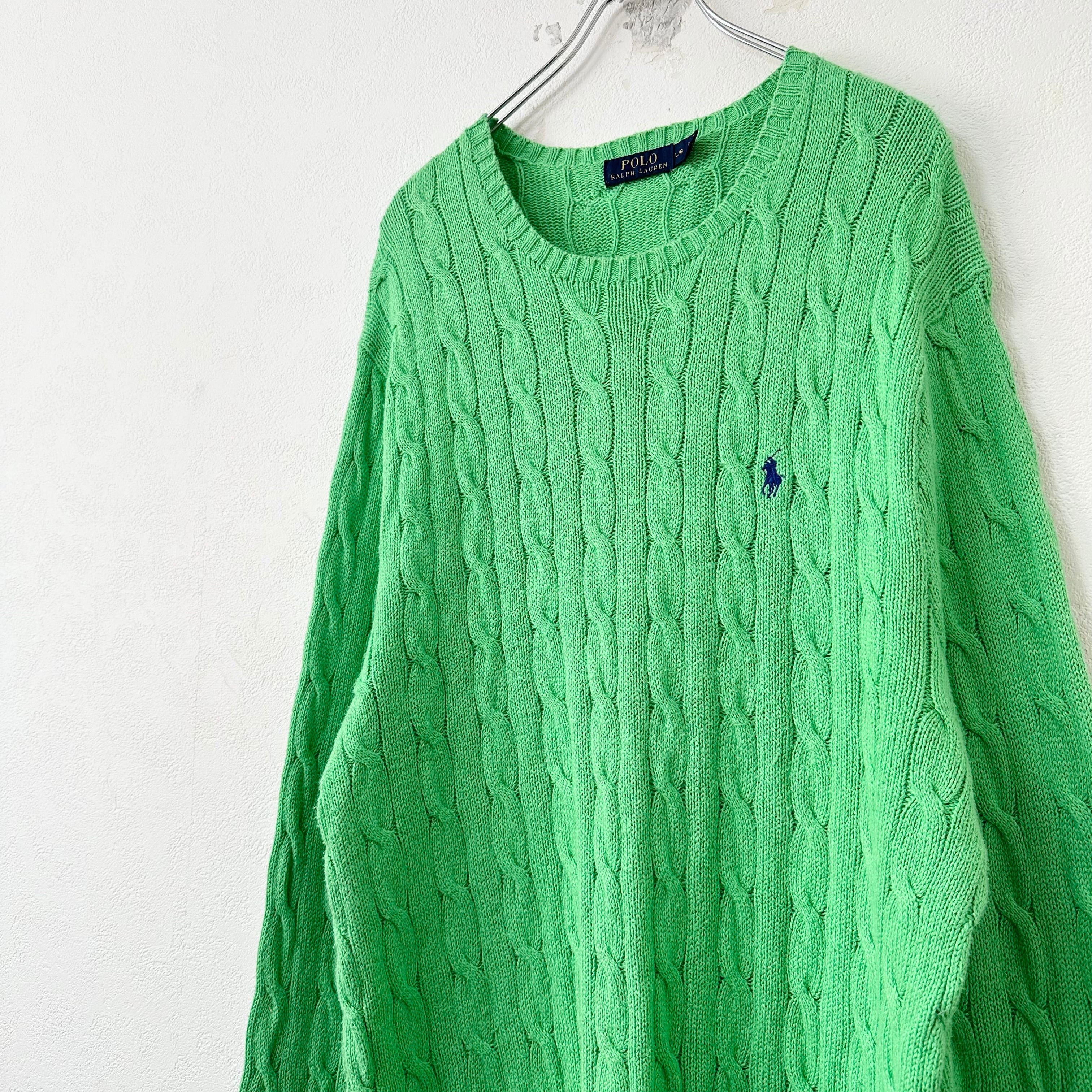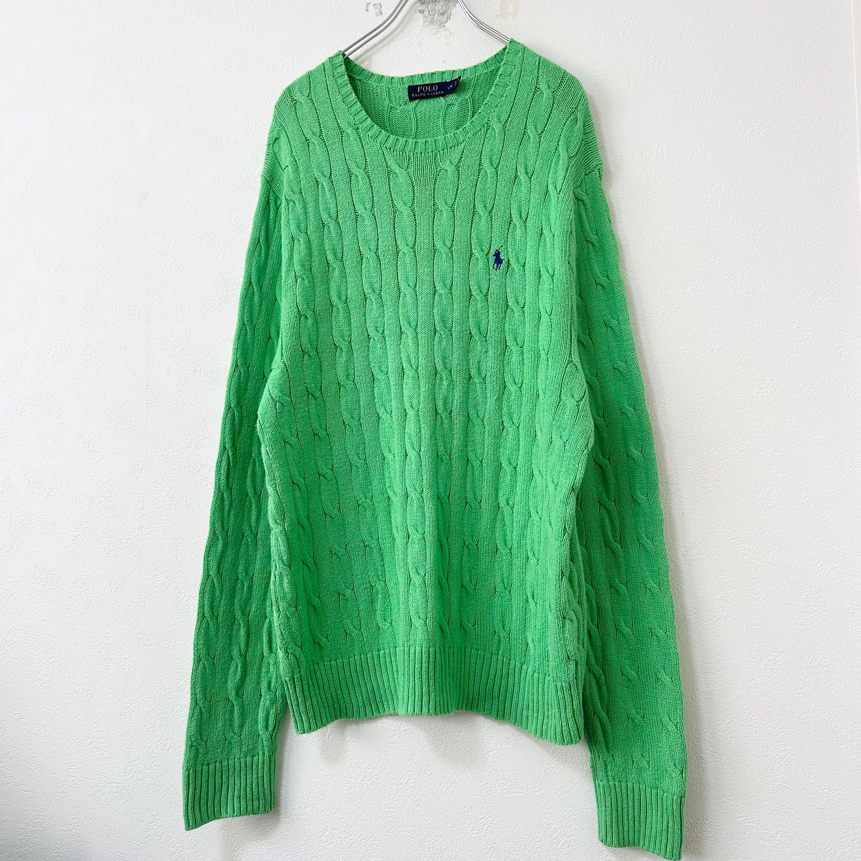 Polo Ralph Lauren/ポロ ラルフローレン★ケーブルニット/セーター★ライトグリーン/黄緑★ネイビー/紺ポニー★L