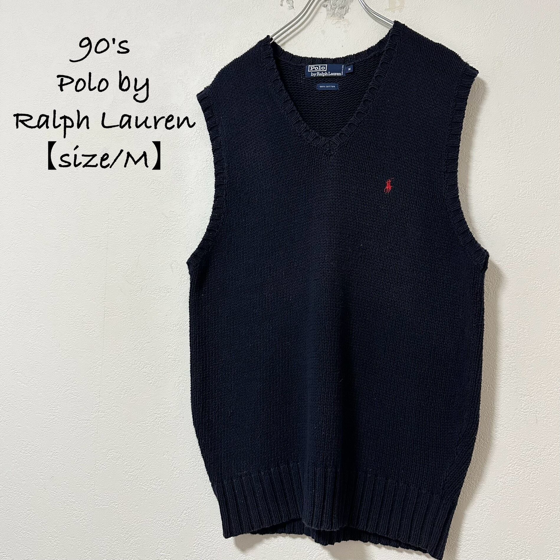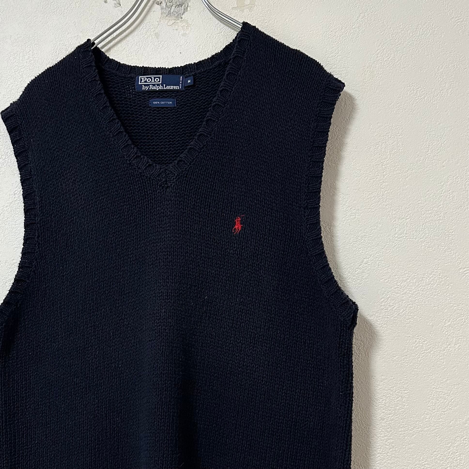 90s★Polo by Ralph Lauren/ポロバイラルフローレン★コットンニットベスト★Vネック★ネイビー/紺★M
