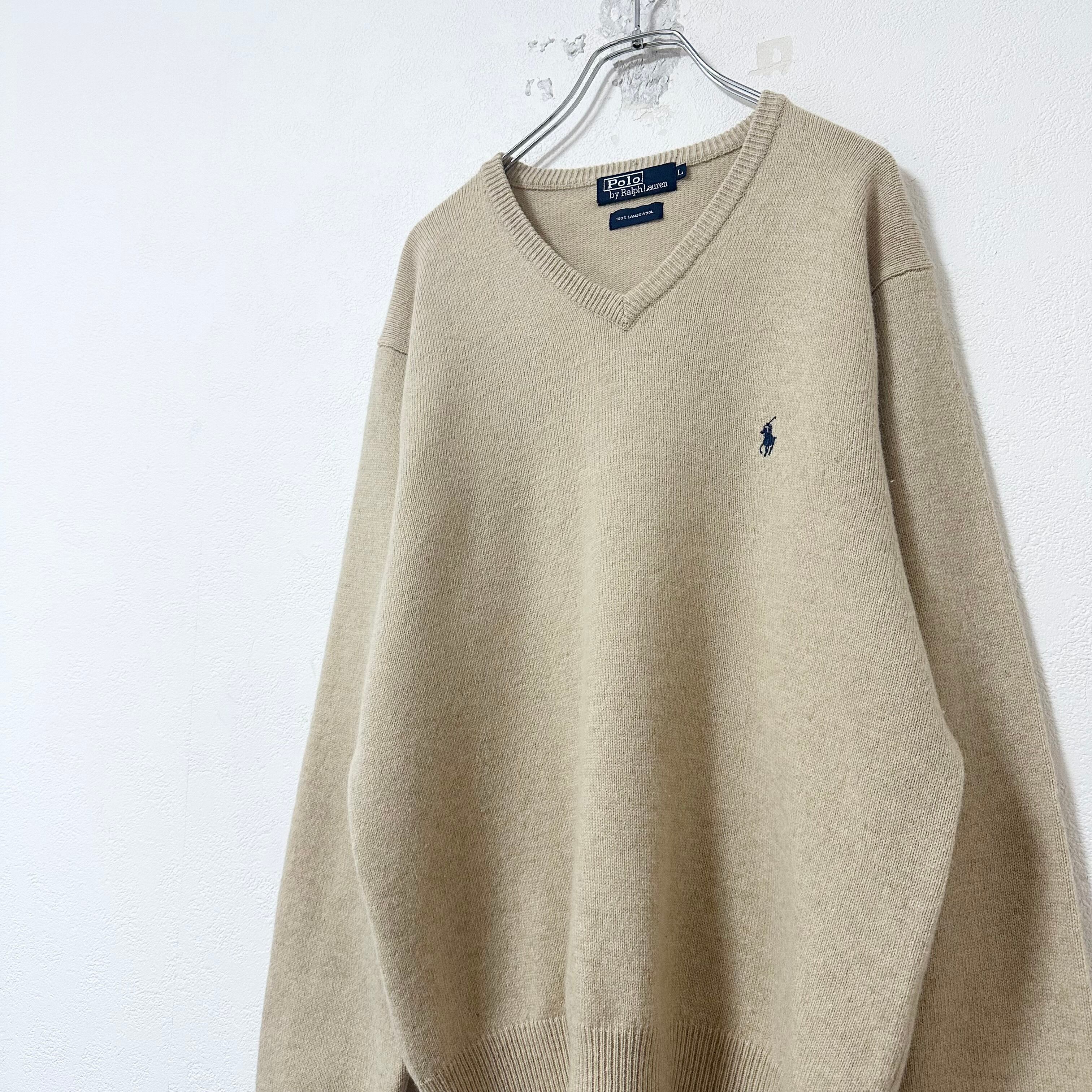 Polo RalphLauren/ポロ ラルフローレン★Vネック★ニット/セーター★無地★Wool/ラムウール/羊毛★ベージュ★L