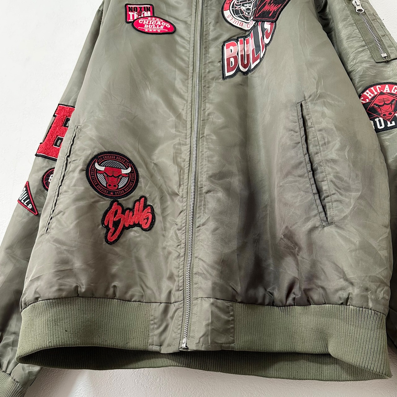 NBA★Chicago Bulls/シカゴ ブルズ★MA1/ボンバージャケット/ジャンパー★オリーブ/カーキ★XXL/2XL