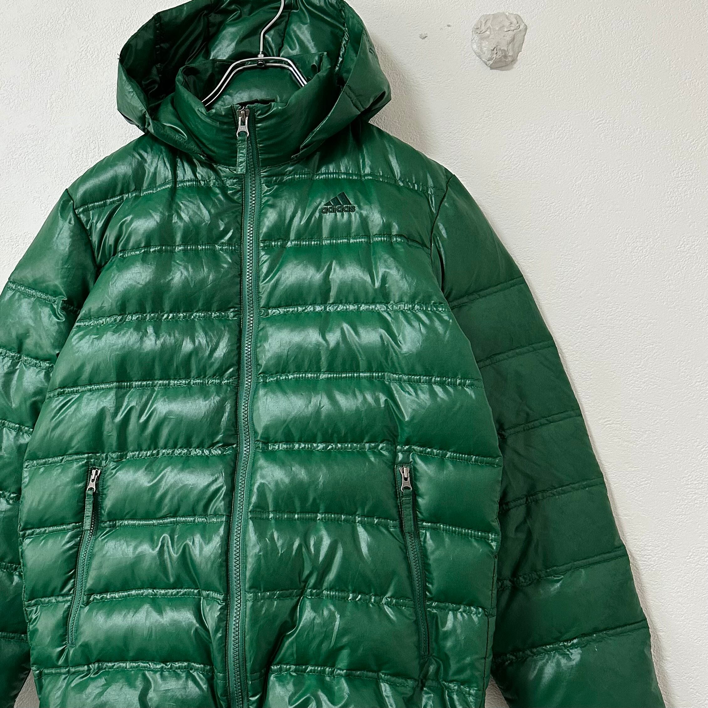 美品★00s★adidas/アディダス★ダウンジャケット★グリーン/緑★フード着脱可★XS