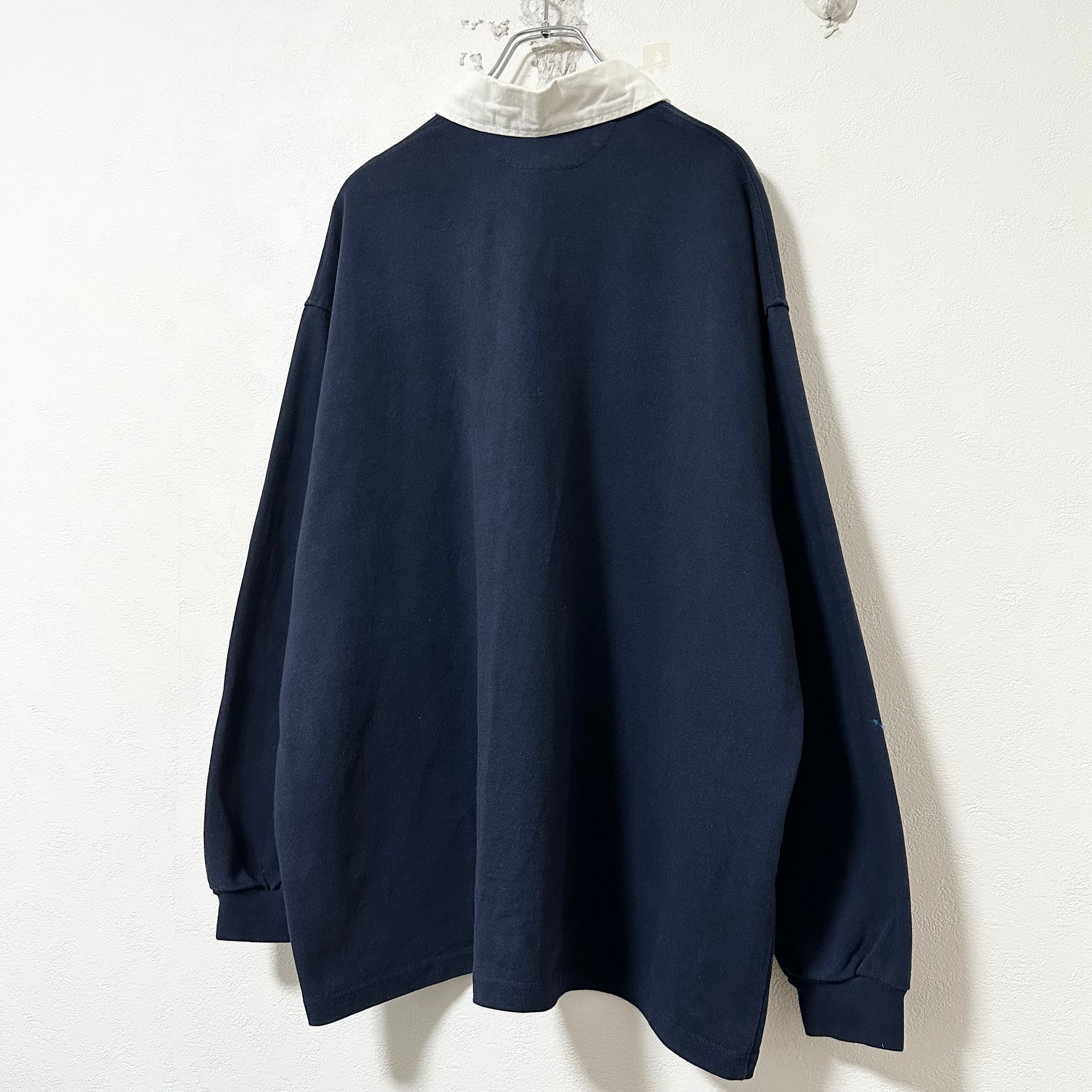 美品★NAUTICA/ノーティカ★ラガーシャツ★ネイビー/紺白★XL〜2XL相当