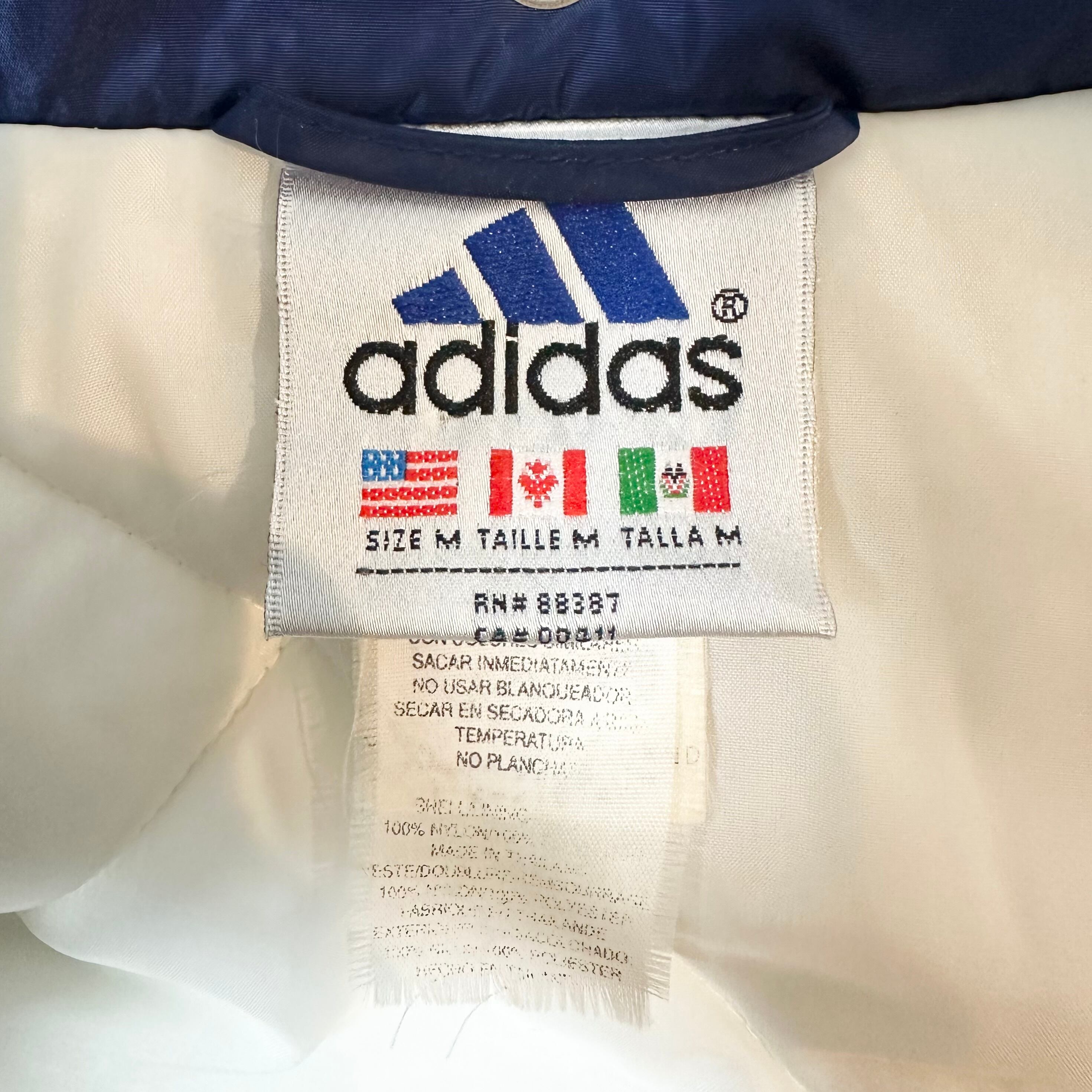 90s★万国旗タグ★adidas/アディダス★ナイロンジャケット★厚手★ネイビー/紺白★XL〜