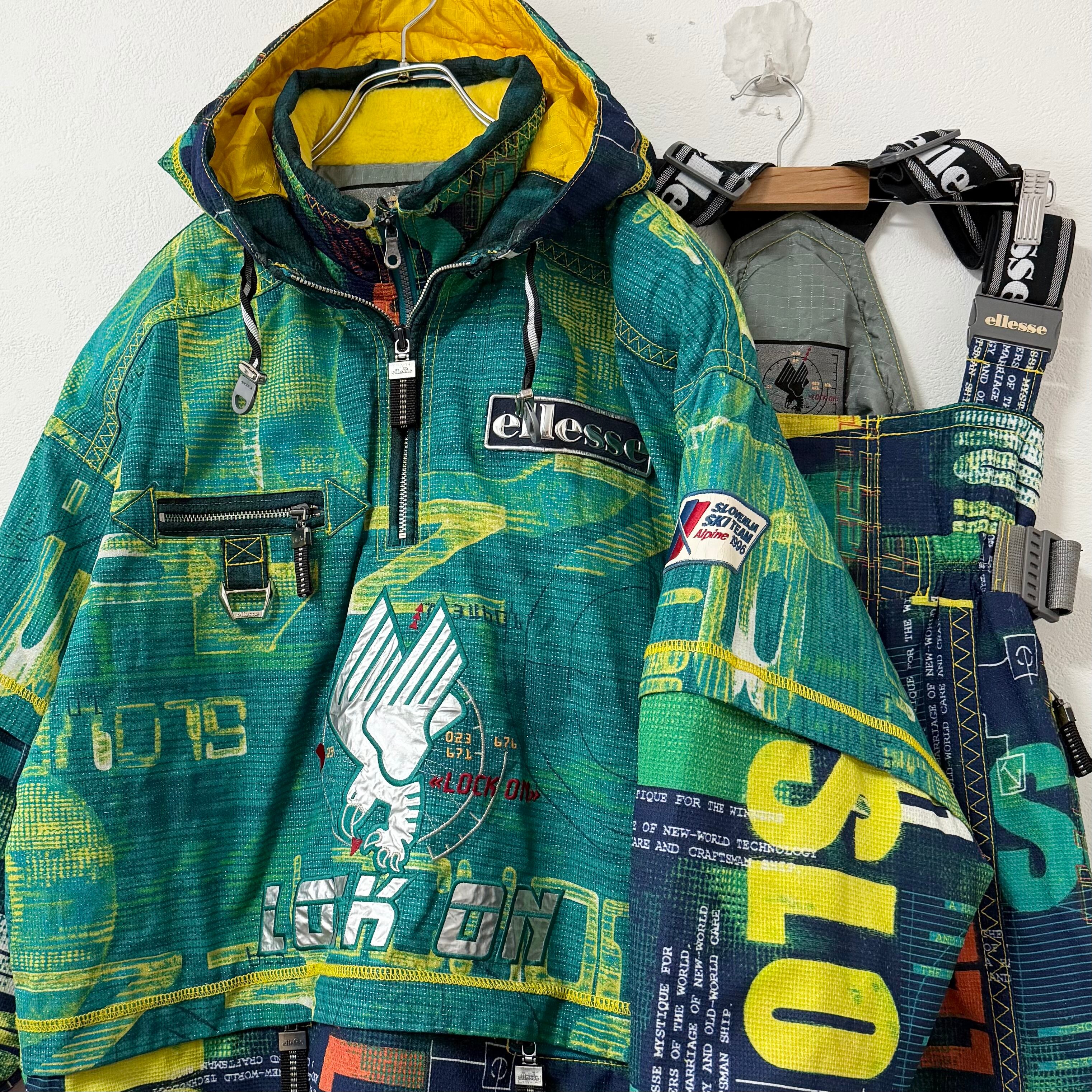 90s★Vintage/ヴィンテージ★ellesse/エレッセ★Ski SetUp★スキー セットアップ★上下★グリーン/緑★M
