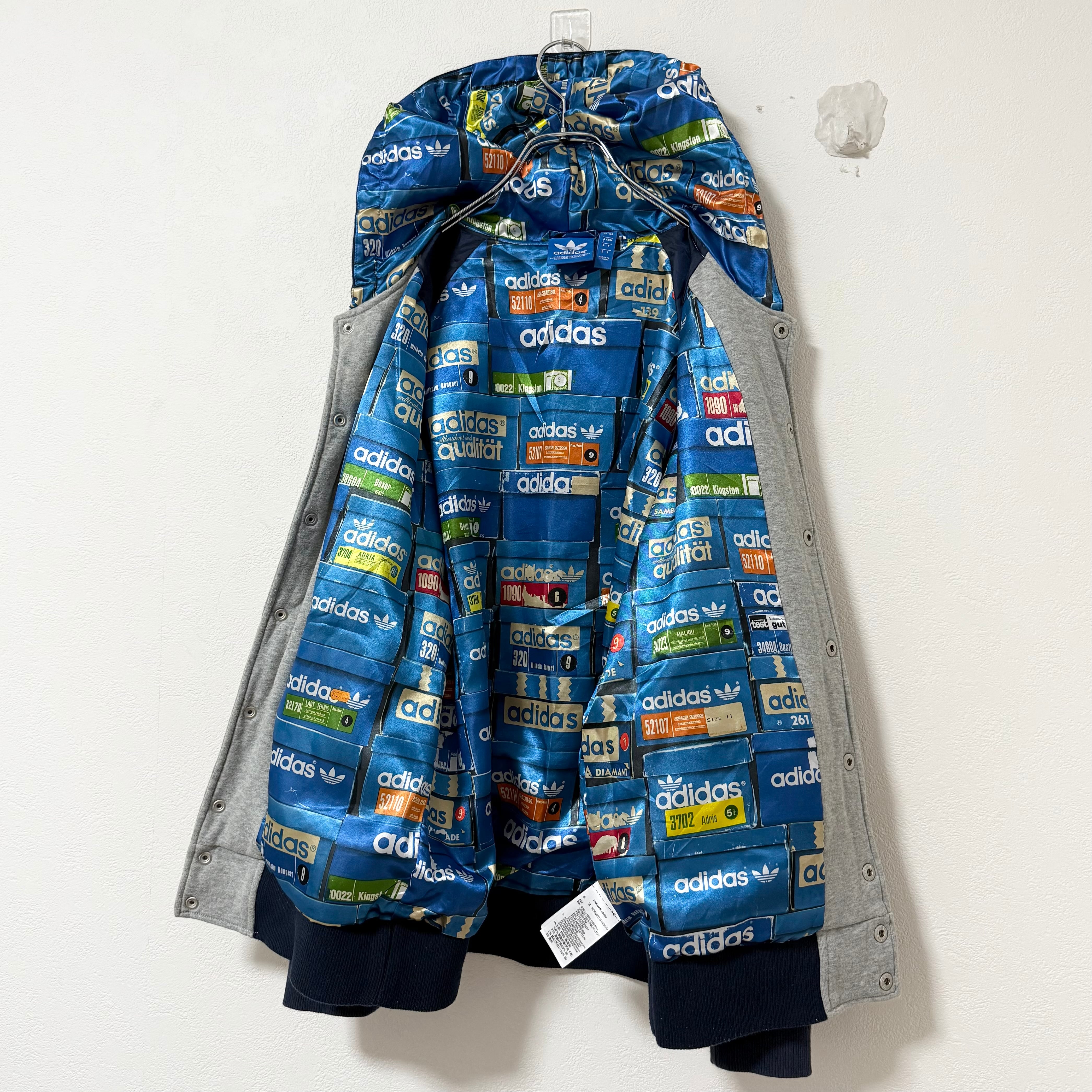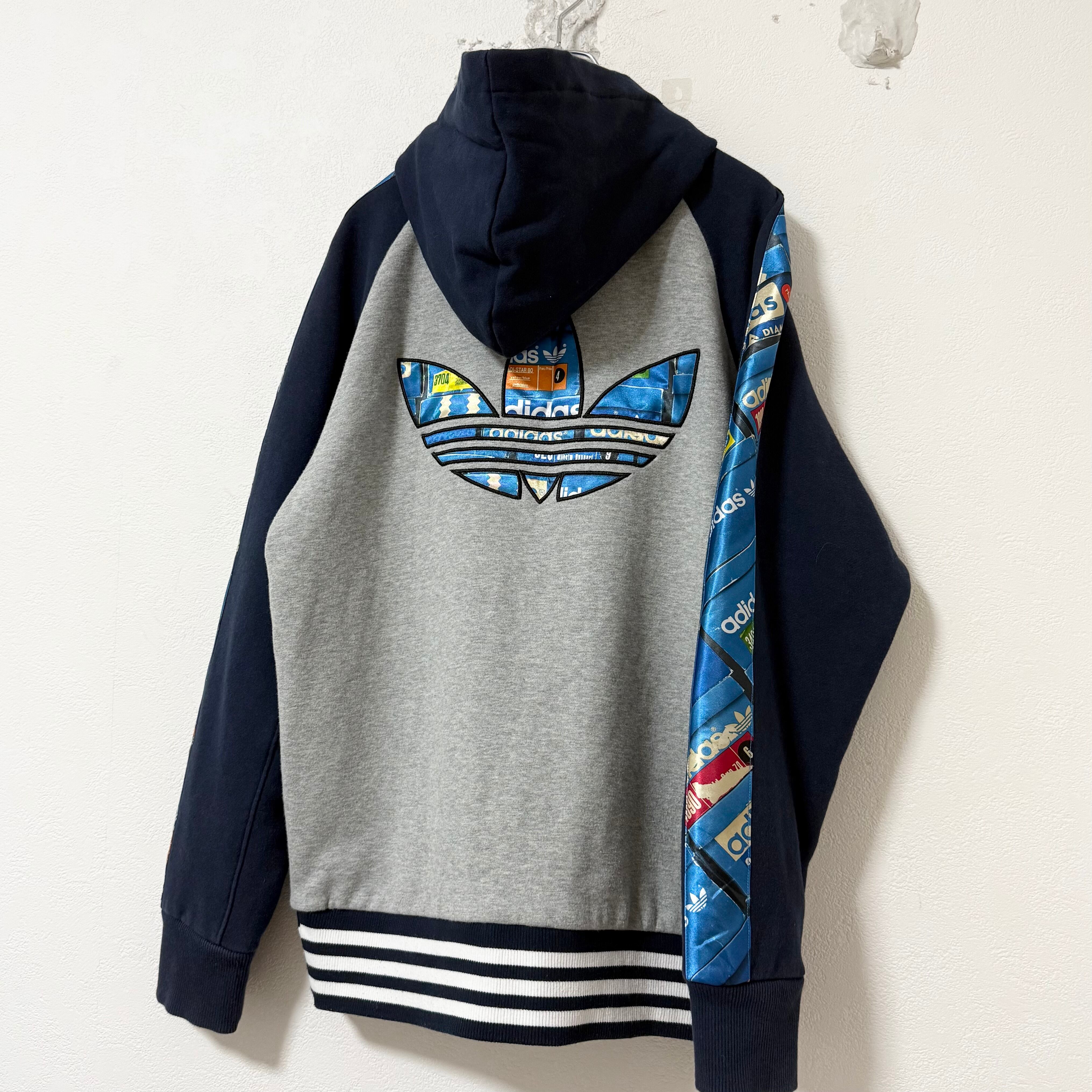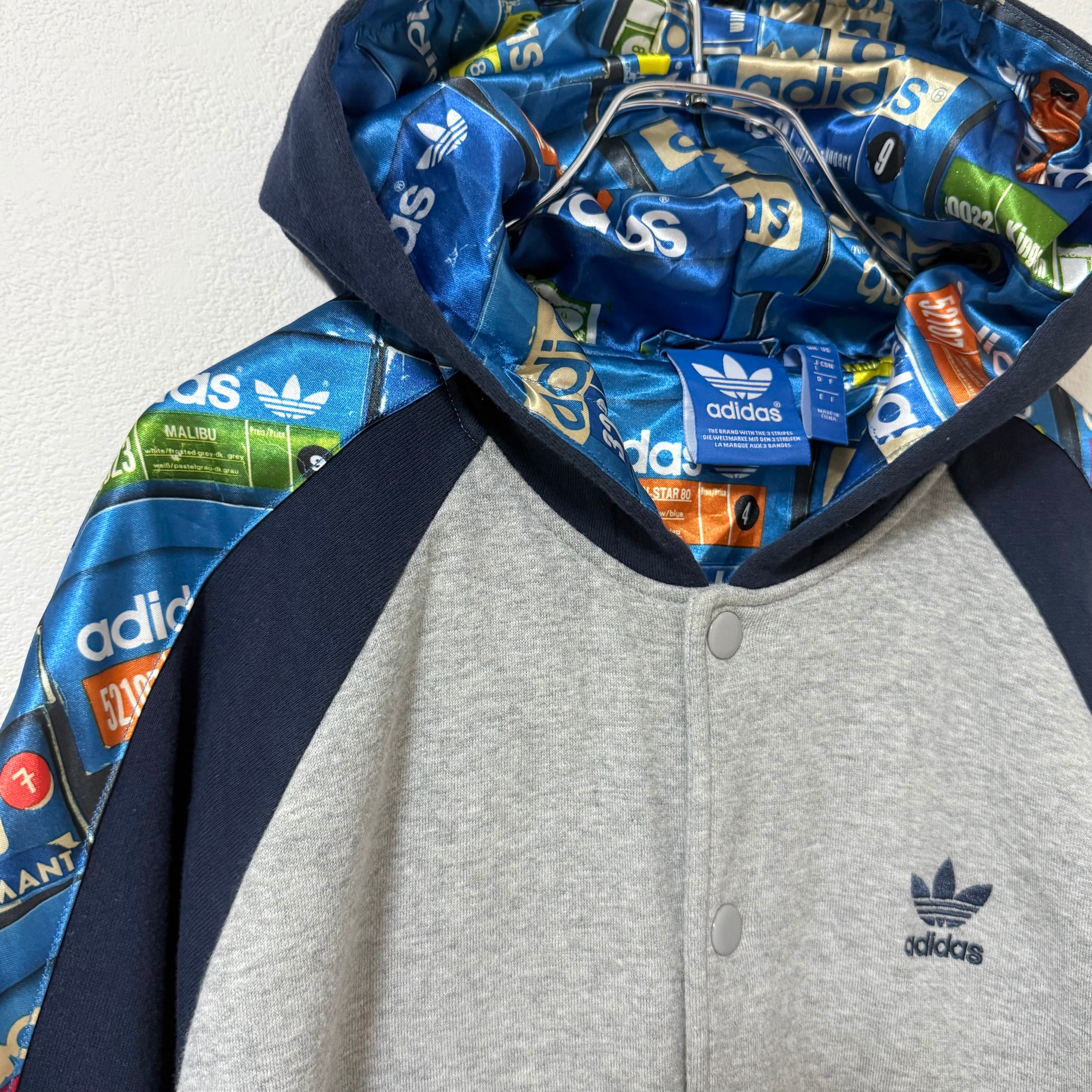 美品★adidas/アディダス★スタジャン★パーカー★Hooded Stadium★靴箱/Box★AO0531★グレー×紺★L