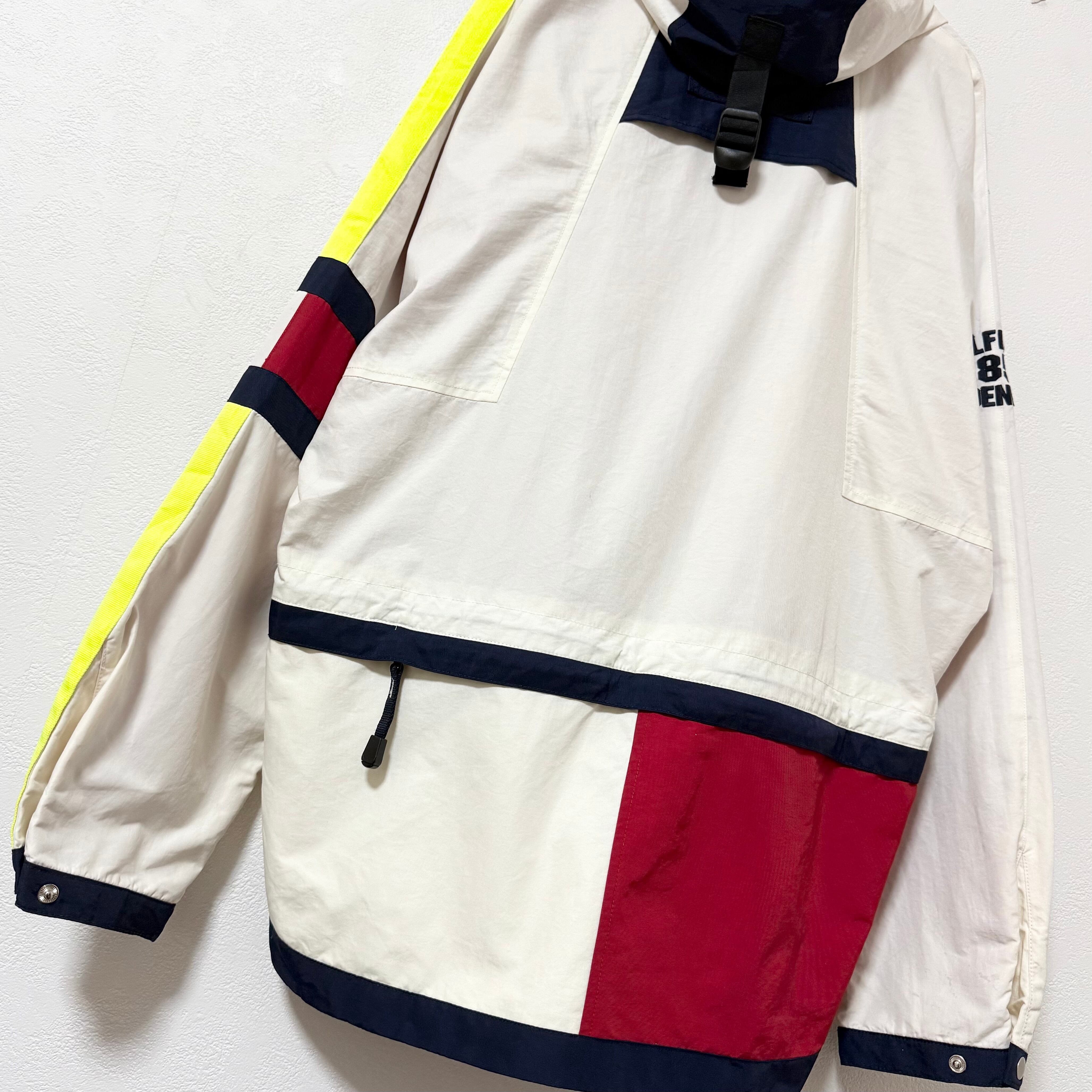 00s★TommyHilfiger/トミーヒルフィガー★アノラックパーカー★ハーフジップ★ナイロンジャケット★セーリング★白紺★L