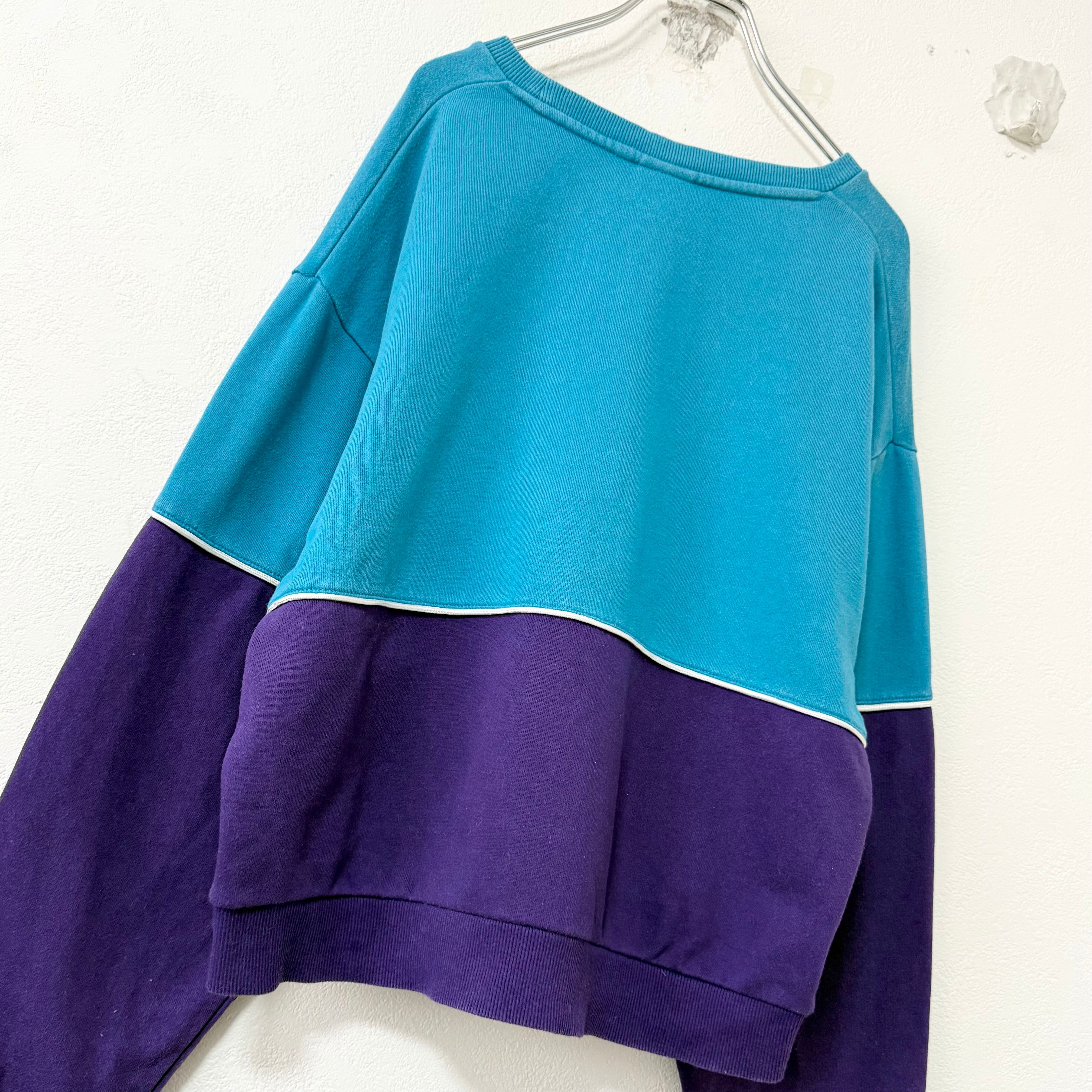 90s★FILA/フィラ★スウェット★トレーナー★パープル/紫×アクア/水色★M