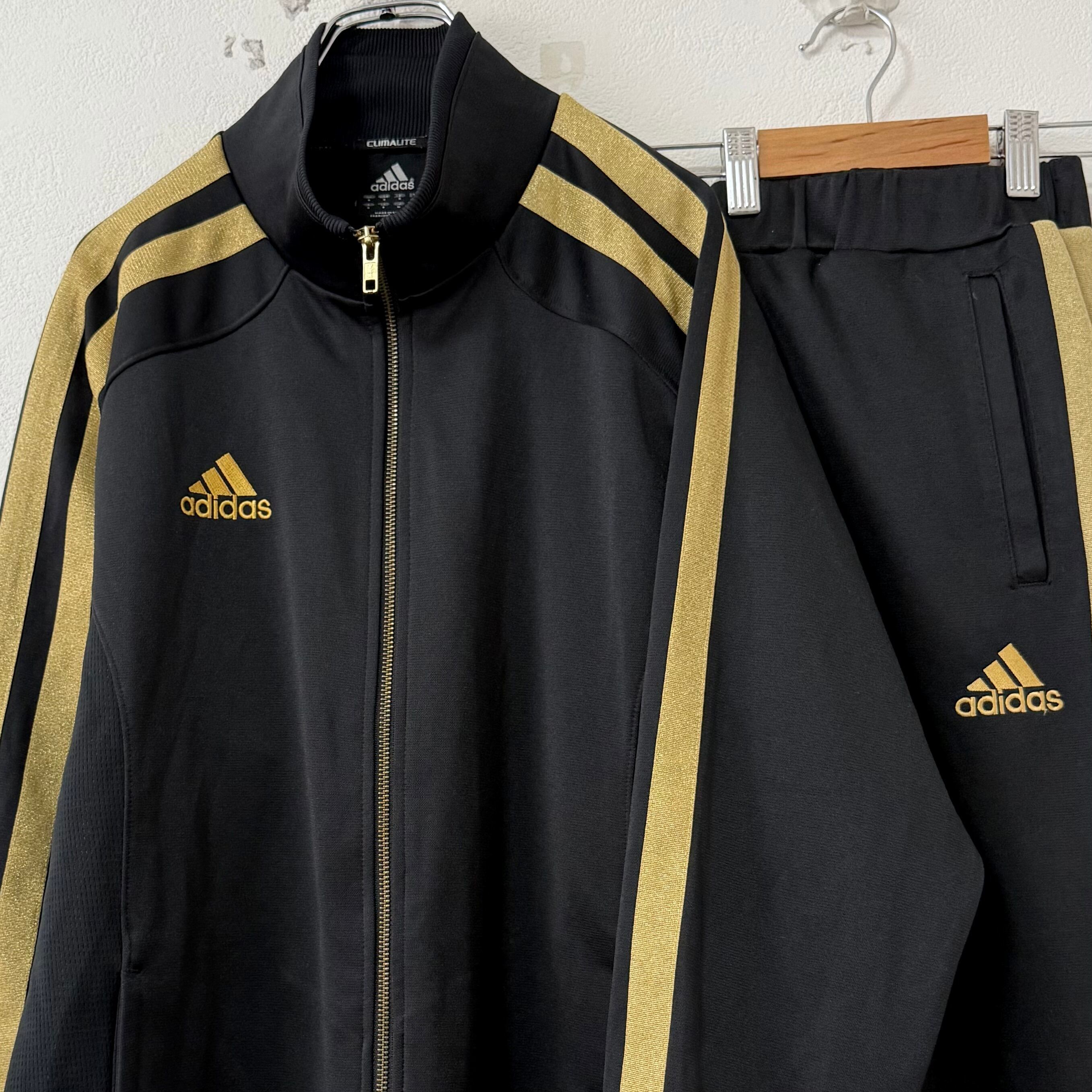 美品★adidas/アディダス★ジャージ★上下★SetUp/セットアップ★Black/ブラック/黒×Gold/ゴールド/金★L