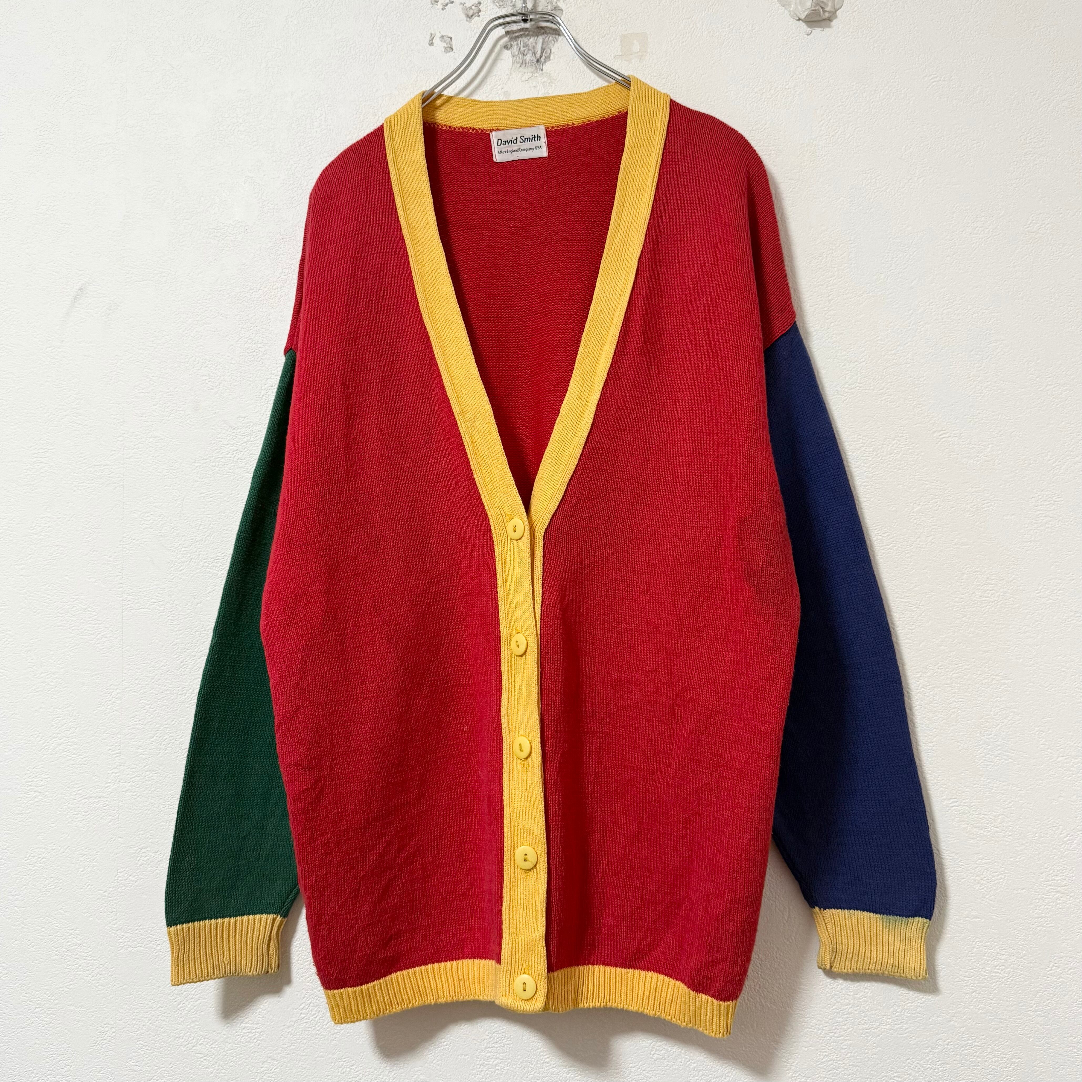 USA製★80s★Vintage/ヴィンテージ★カーディガン★DavidSmith/デイビッドスミス★クレイジー★レッド/赤黄緑青